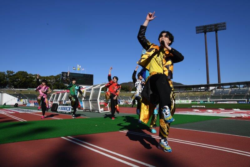 FC岐阜アンバサダーの『祭nine.』が来場。ステージでのトークショーはもちろん、試合前とハーフタイムにはLIVEも実施。