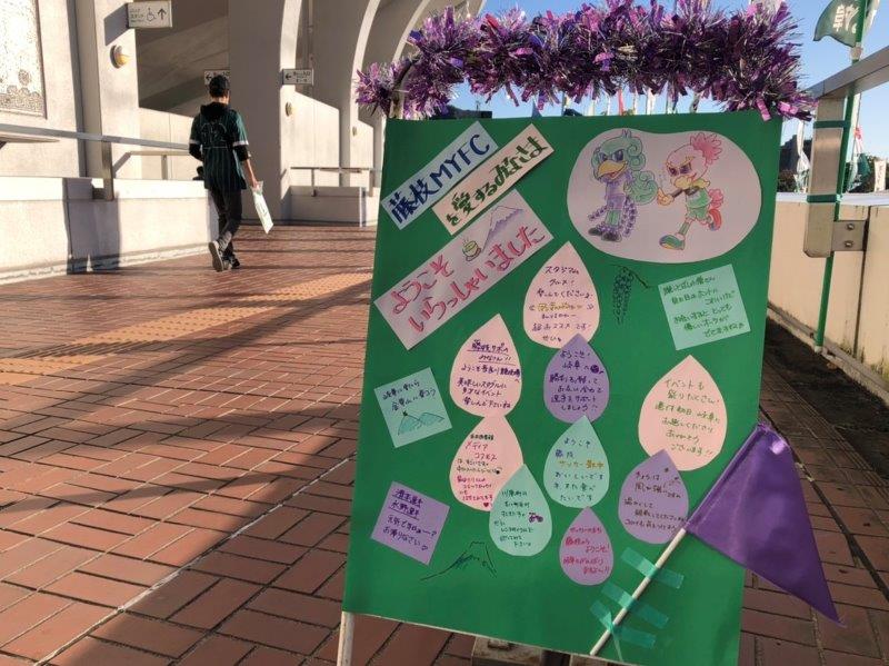 グリーンズの皆さんが、ご来場頂いた藤枝MYFCサポーターの皆さんに向けたウェルカムボードを作ってくれました。
