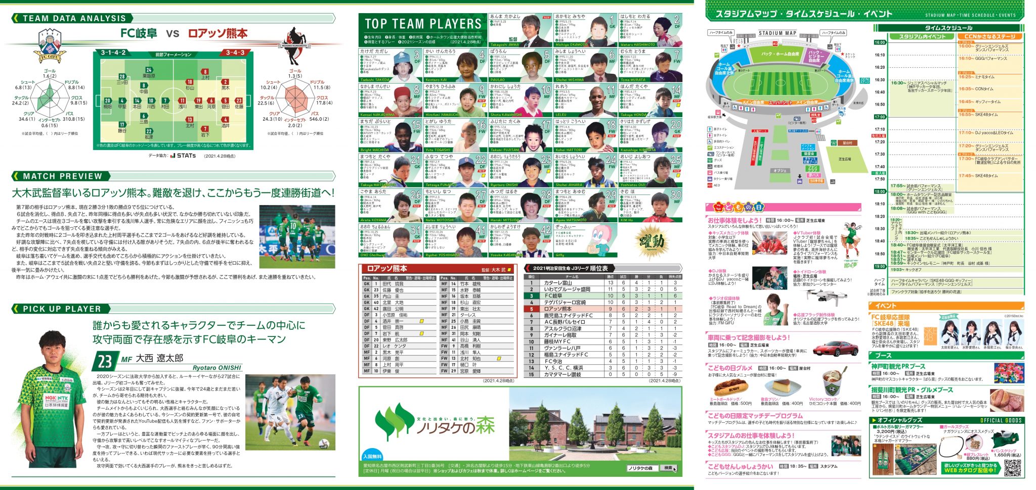 ★来場予定でしたFC岐阜応援隊「SKE48」の福士奈央さんが不参加となったため、上村亜柚香さんが来場いたします(熊本戦のマッチデープログラム内は福士奈央さんのままとなっておりますが、来場は上村亜柚香さんとなります)。