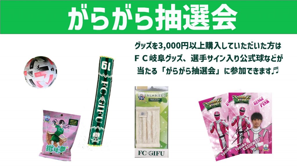 FC岐阜グッズ、選手サイン入り公式球などが当たる「がらがら抽選会」に参加できます。