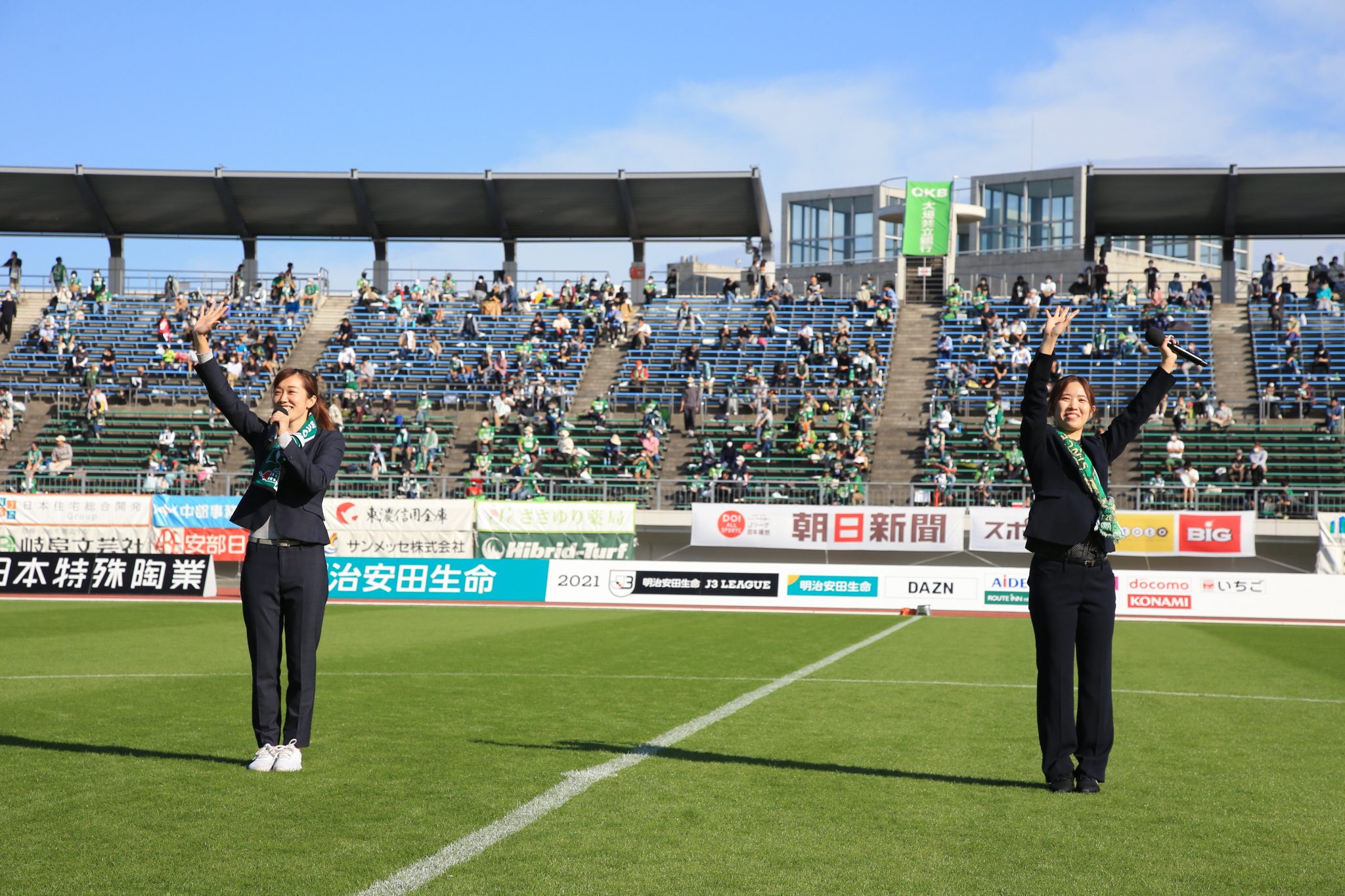 カターレ富山戦ではFC岐阜応援隊の、#SKE48 から、るかてぃん、なーやん、おしりん、さあや、ふゆっぴ、くまちゃんが来てくれてスタジアムライブで盛り上げてくれたよー