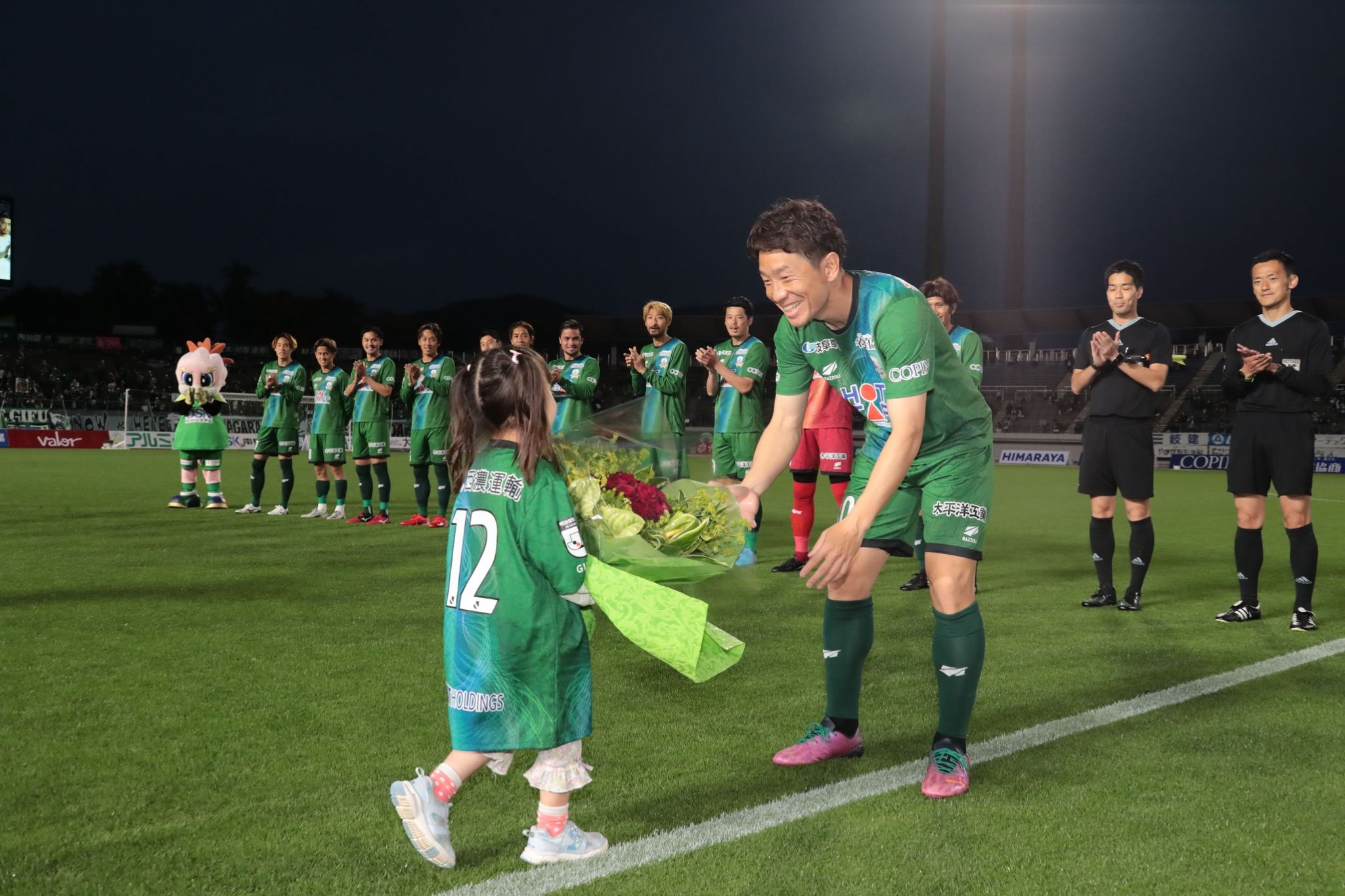 当日は、山の神・プロランナーの神野大地さん(@daichiagu)、FC岐阜応援隊SKE48のみなさん、ミナモ先輩もスタジアムを盛り上げてくれて本当感謝やよ#fcgifu #ギッフィー #ギッフィーポーズ pic.twitter.com/xRVbq37y4L
