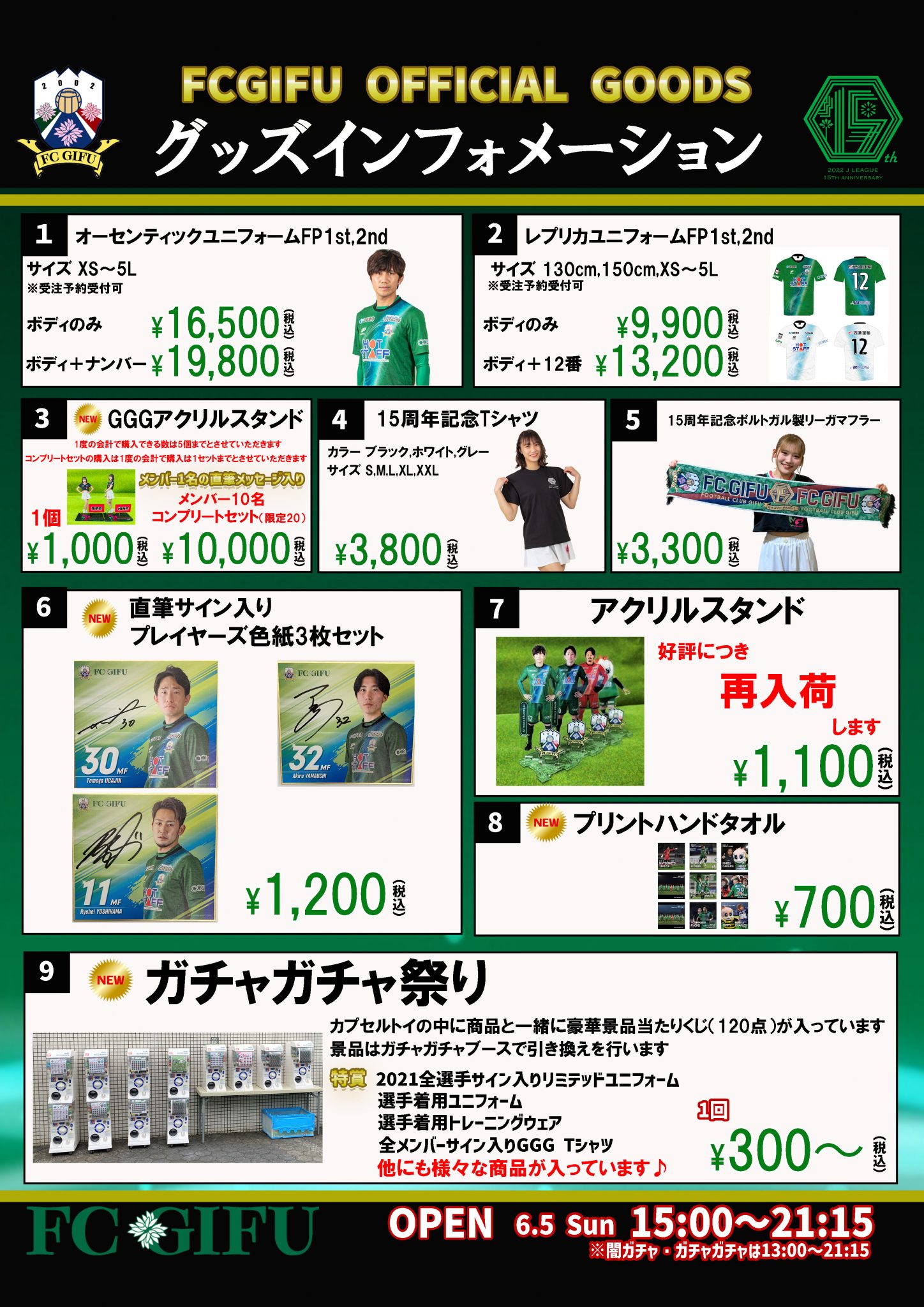 グッズショップ営業時間/15:00~試合終了後15分程度