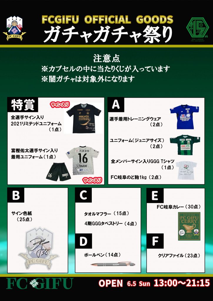 この試合グッズショップのオープン時間は「キックオフの4時間前」ガチャガチャは「キックオフの6時間前」になります。