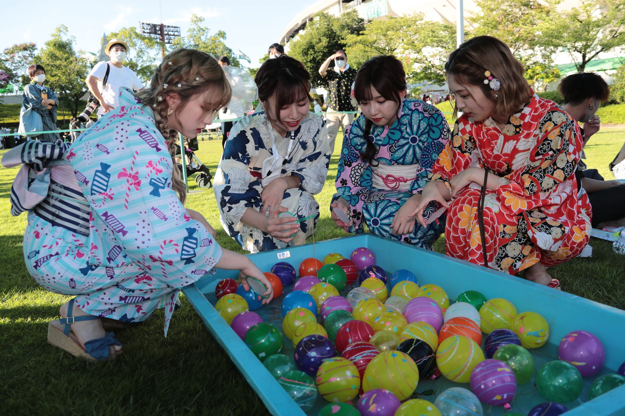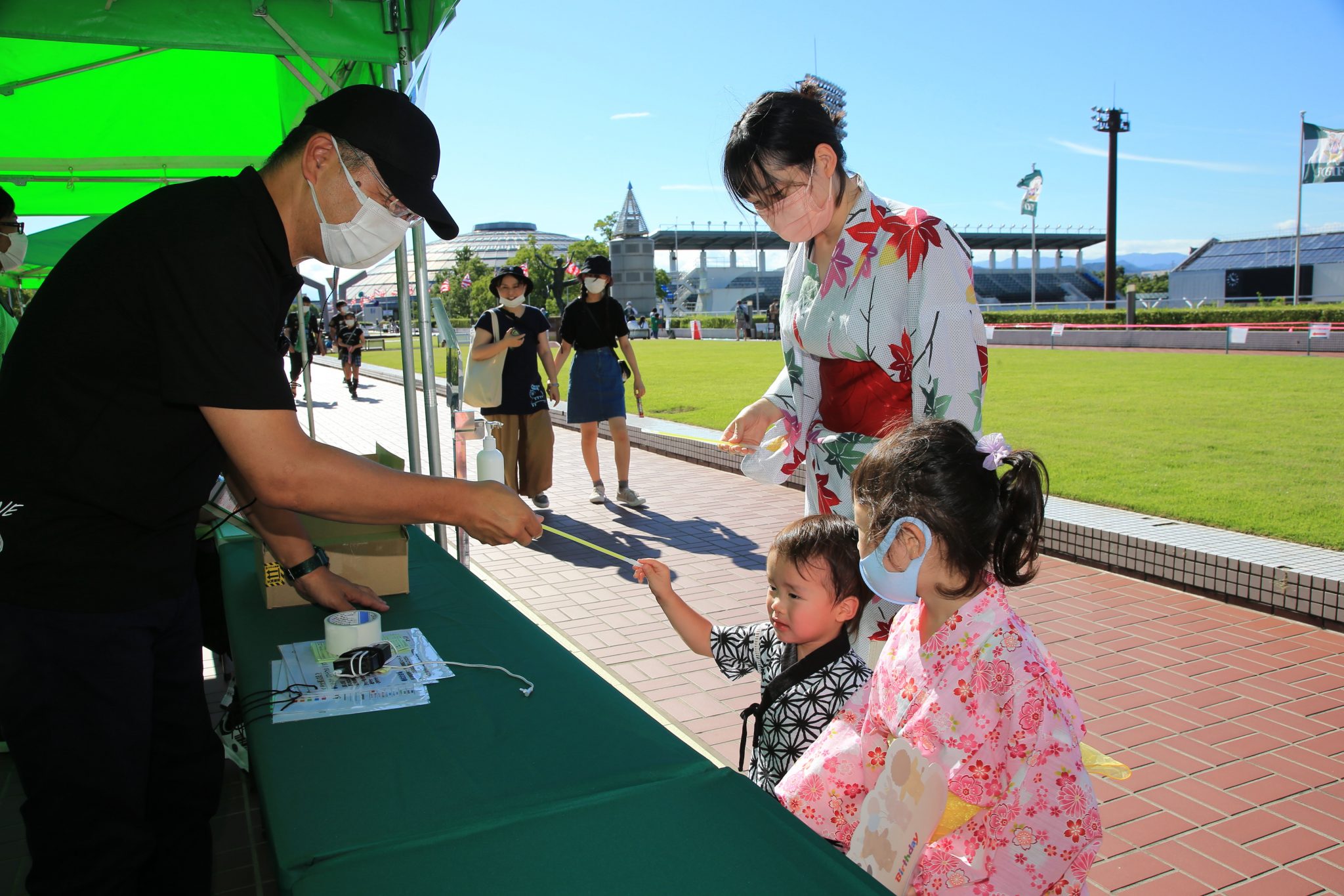 浴衣・甚平で来場の方に緑のサイリウムをプレゼントさせていただきました。