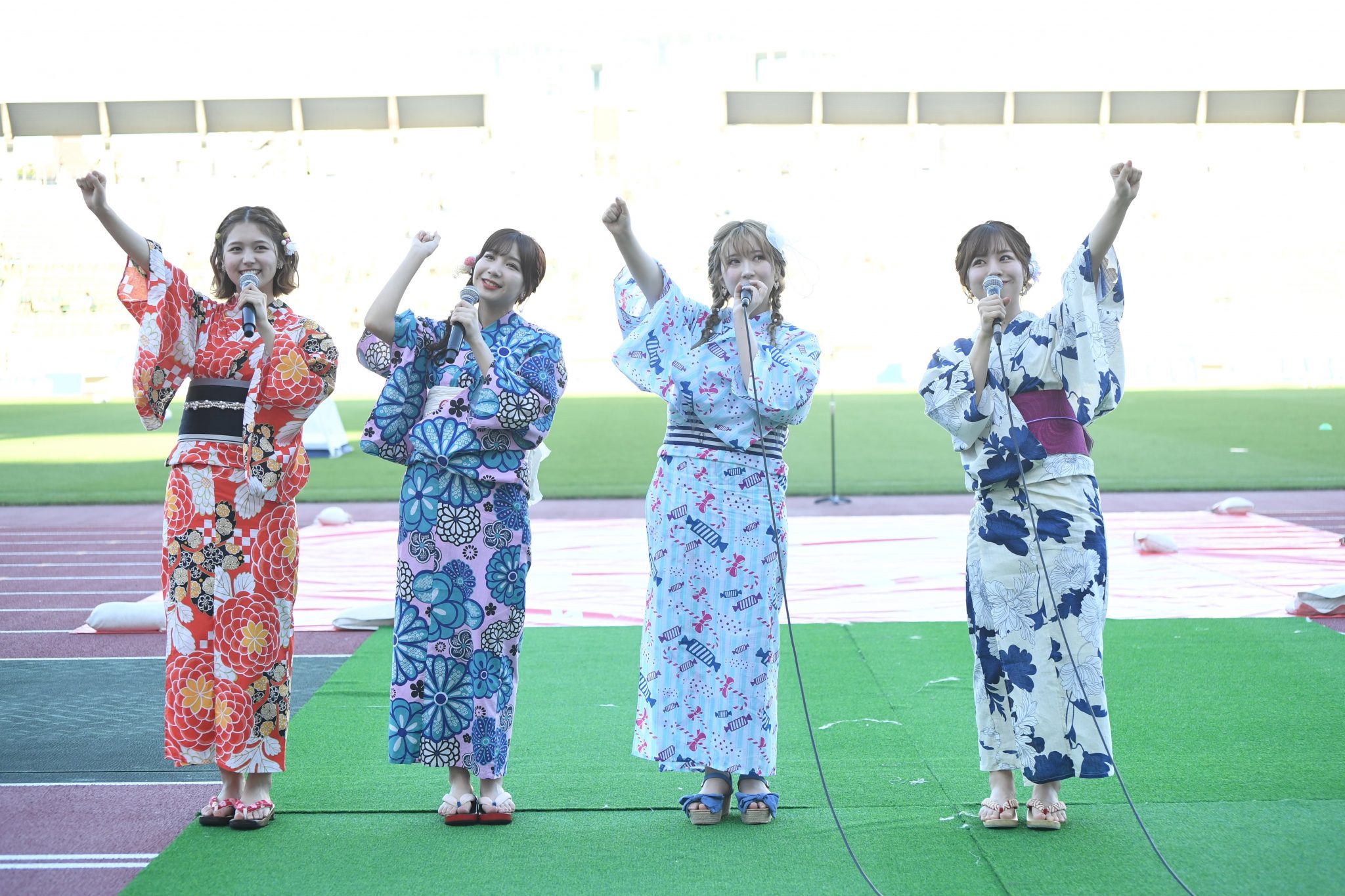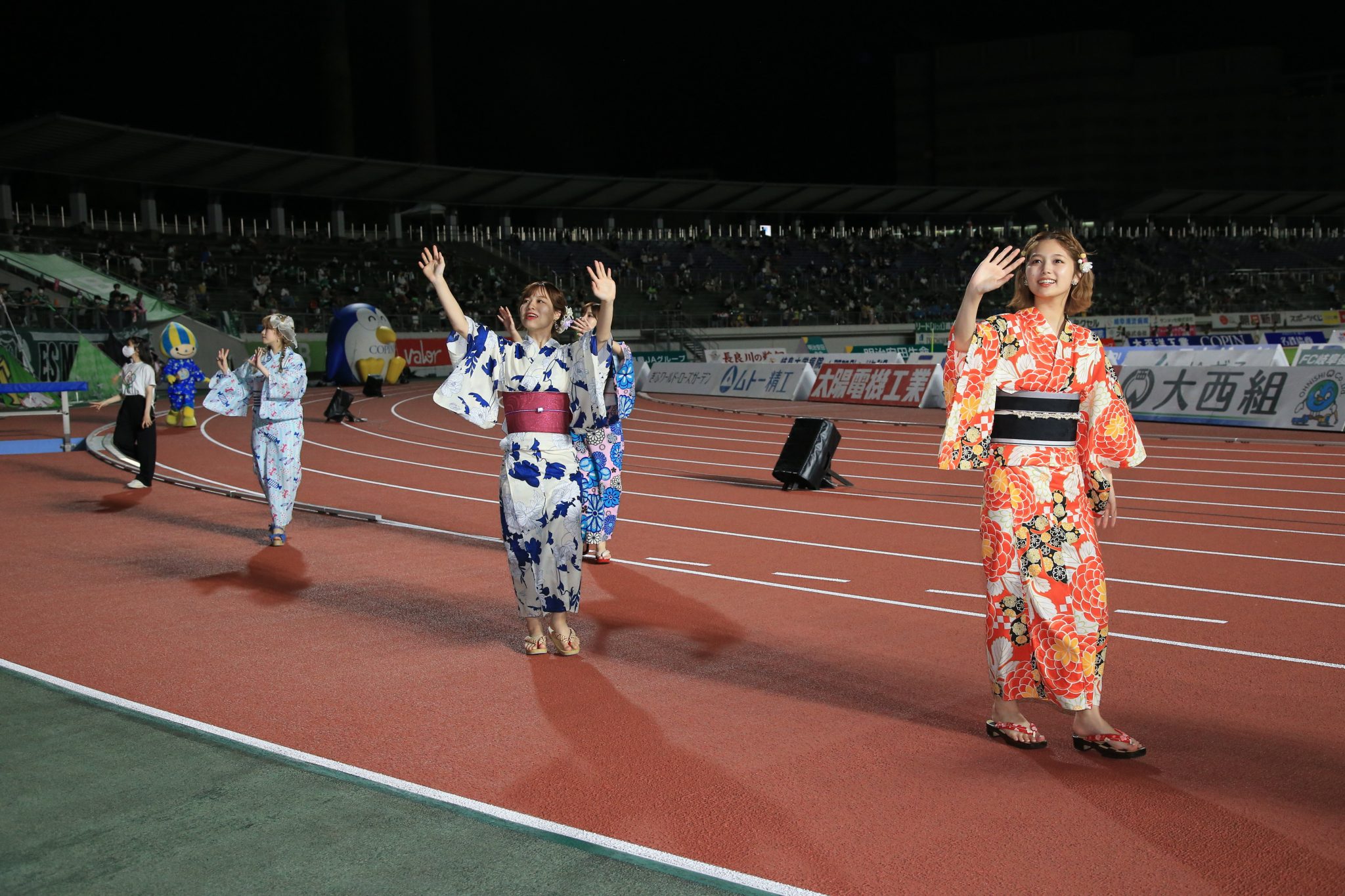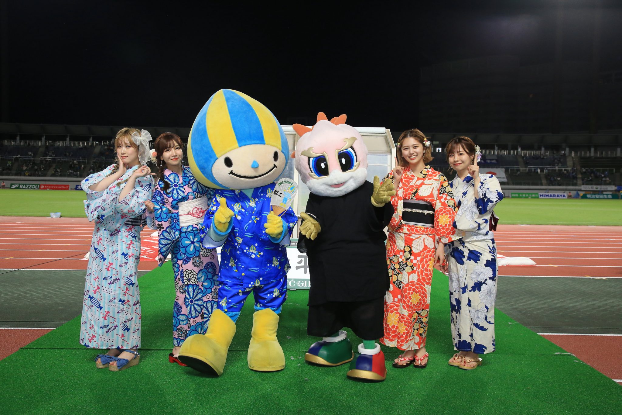 FC岐阜後半戦初戦は、夏祭りイベントって事で、#ske48(@ske48official)のるかてぃん、あやめろ、おしりん、あいりたんも浴衣姿で普段とはまた違ってめちゃ可愛かったなー