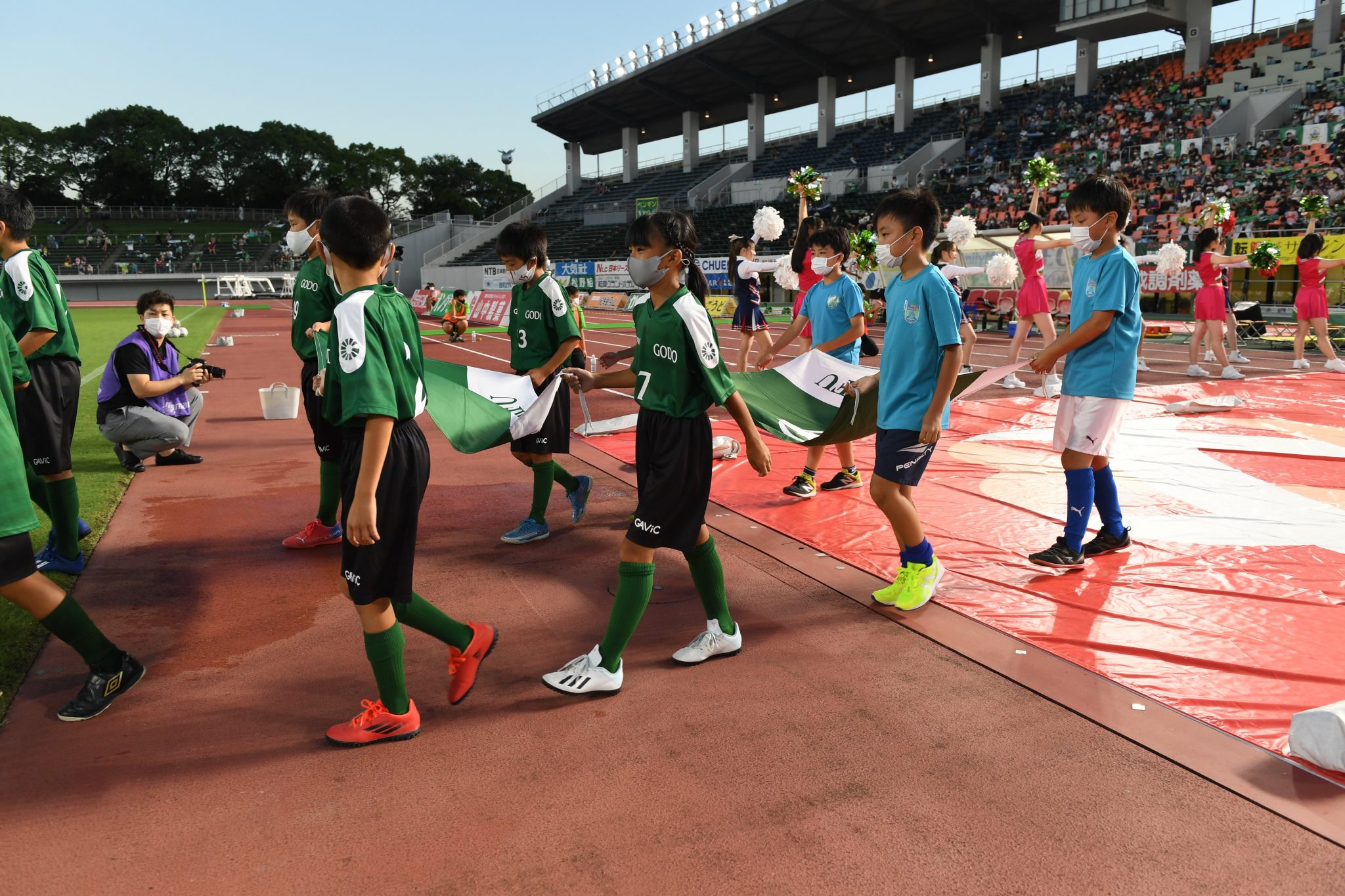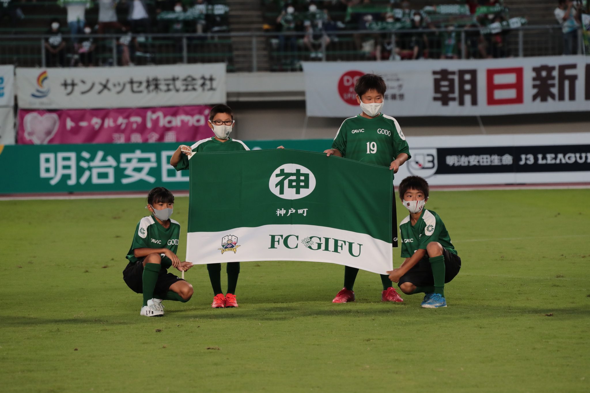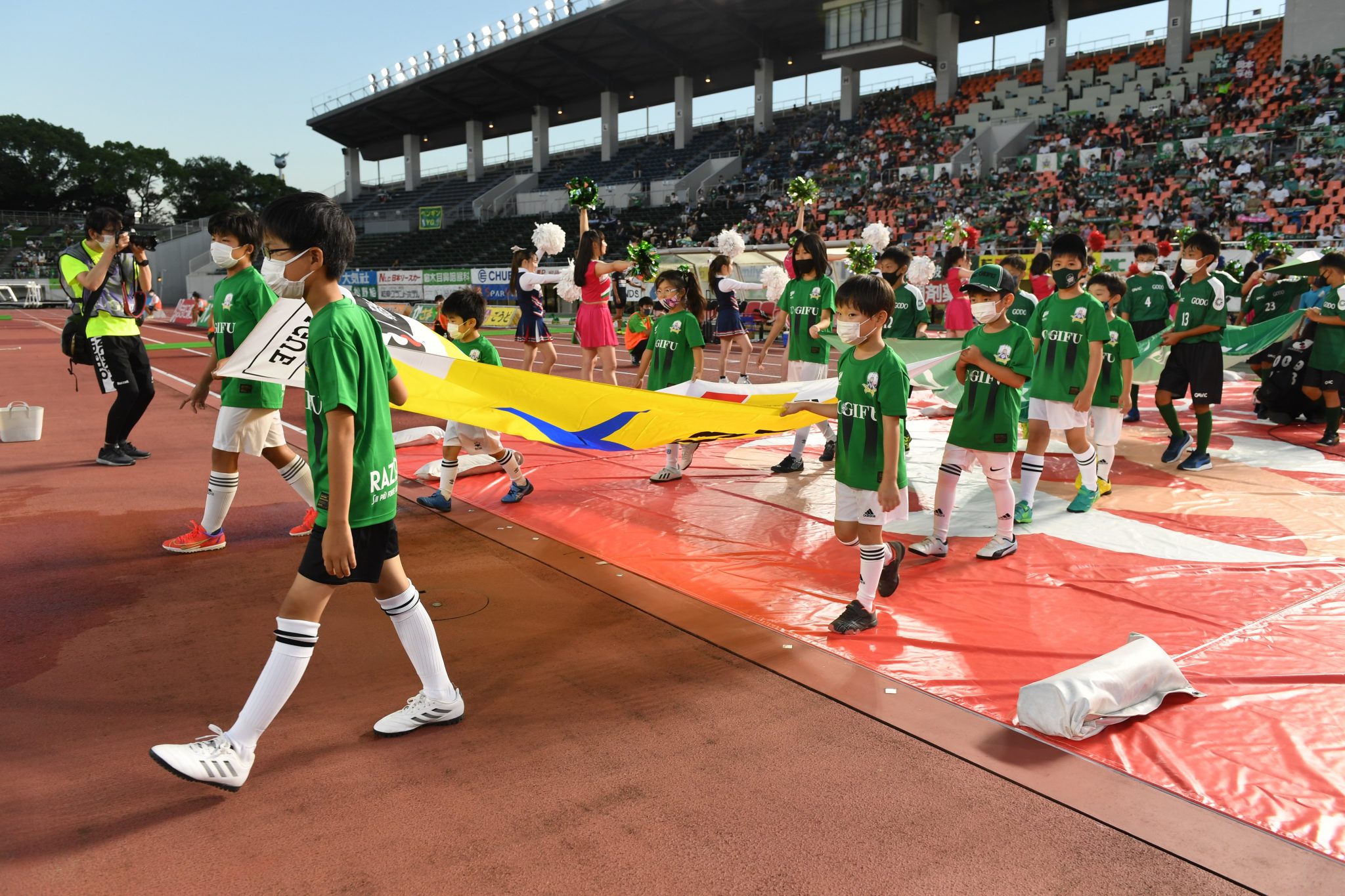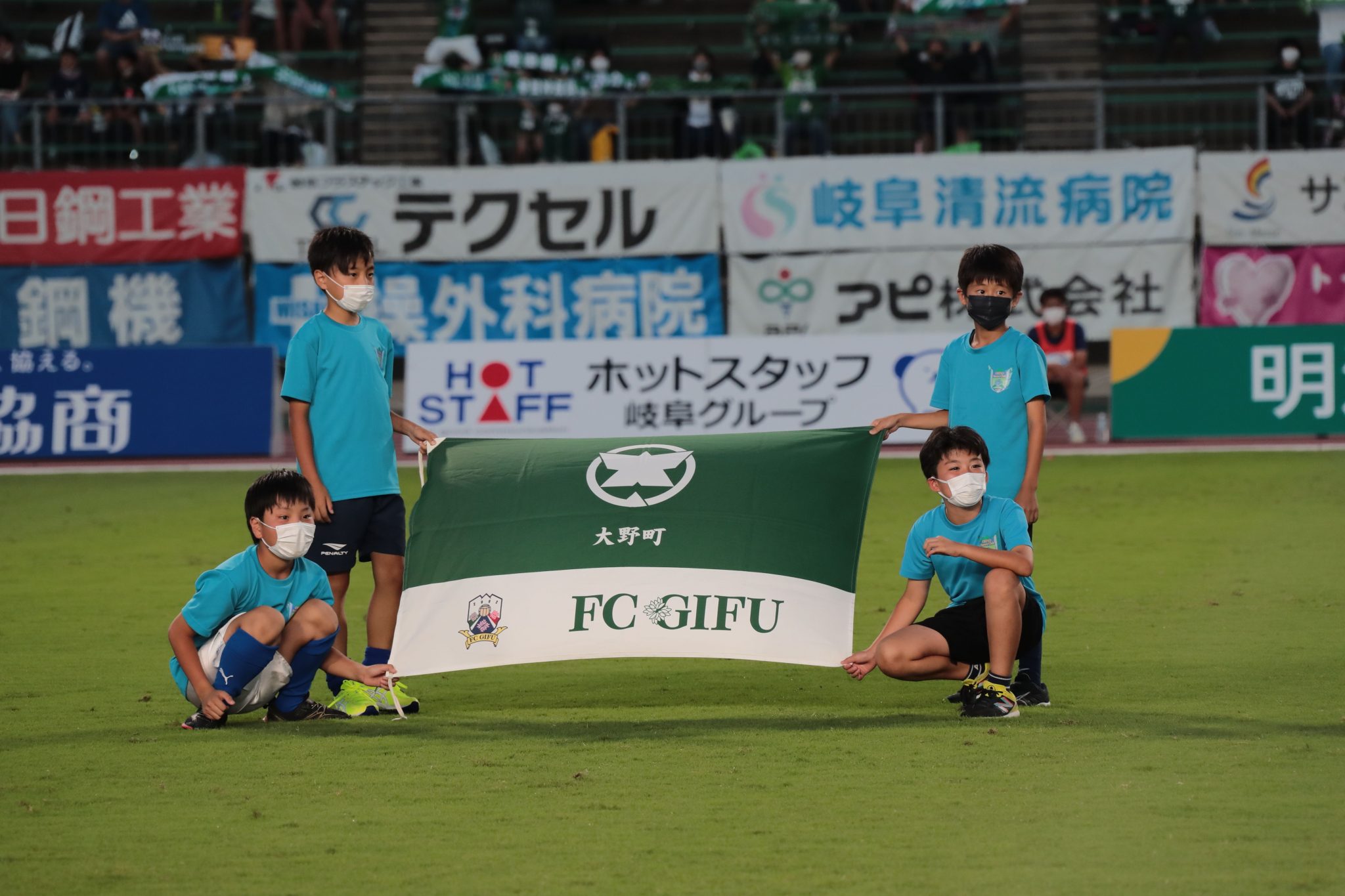 フラッグべアラー「FC岐阜サッカースクール生、神戸町スポーツ少年団、大野サッカークラブ少年団」
