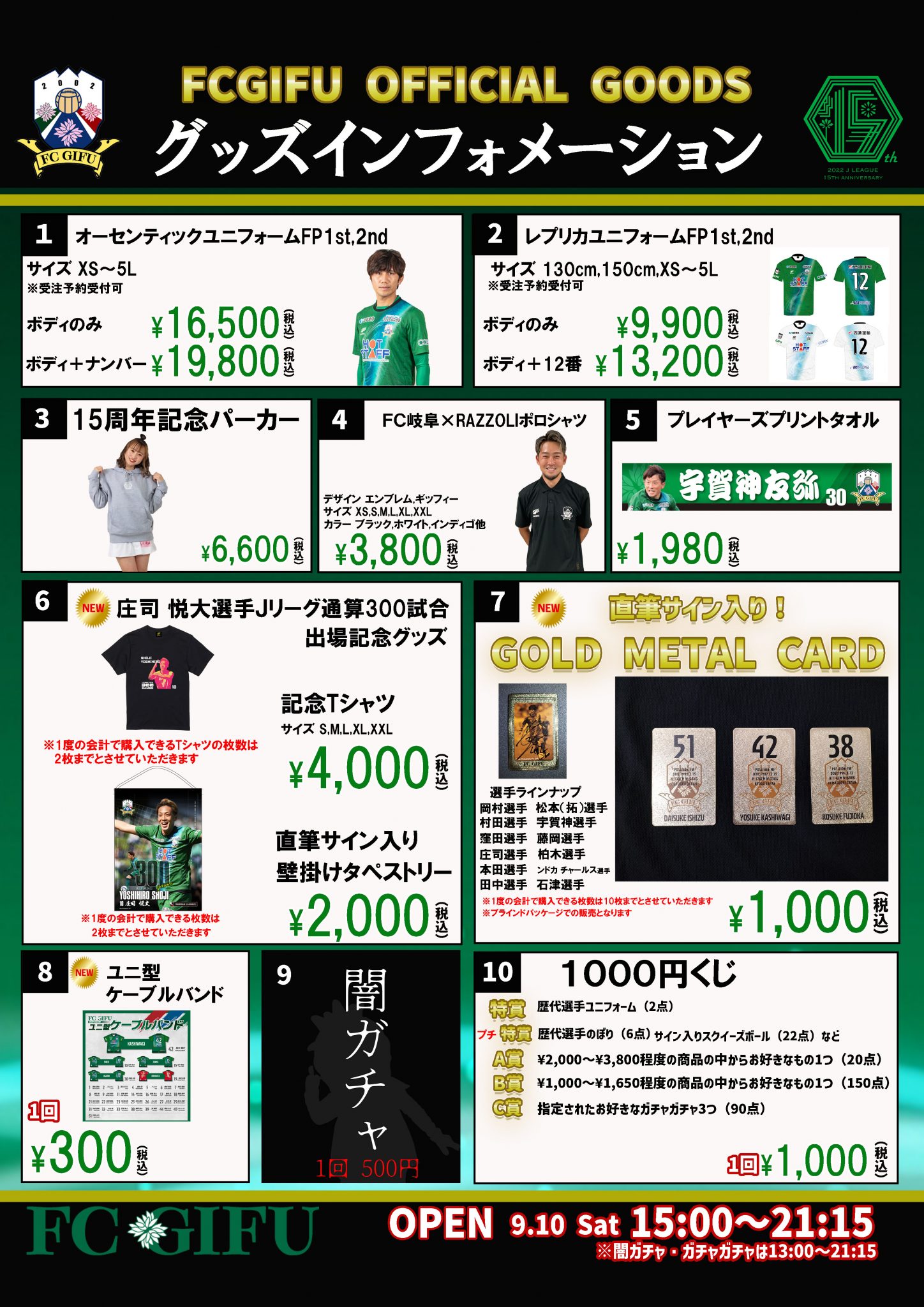 グッズショップ営業時間/15:00~試合終了後15分程度