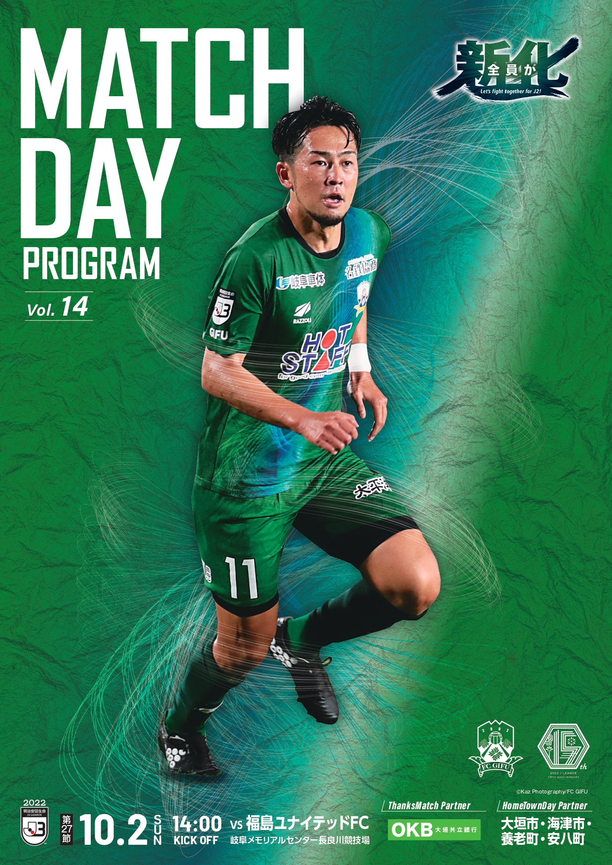 10月2日(日)福島ユナイテッドFC戦のマッチデープログラムをHPにて公開いたしました。