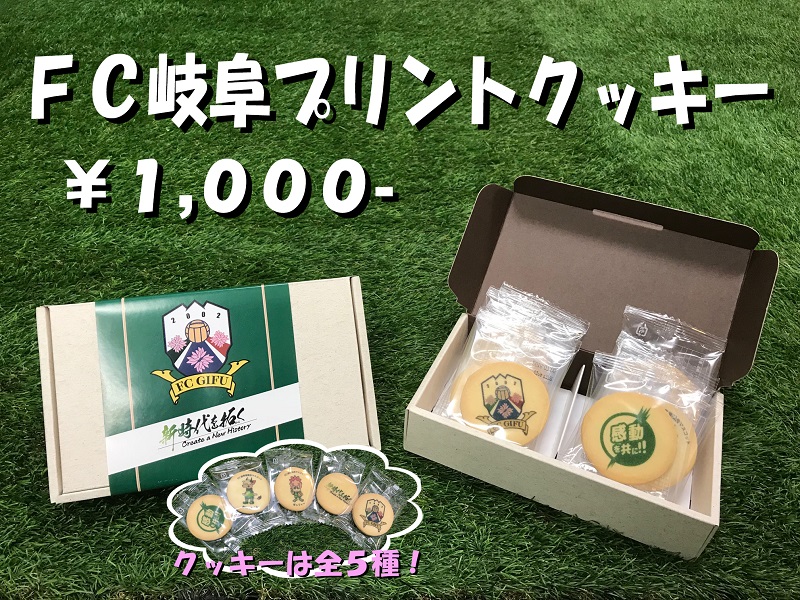 FC岐阜エンブレムや可愛らしいギッフィーなど、全5種類のプリントクッキーがパッケージされています。