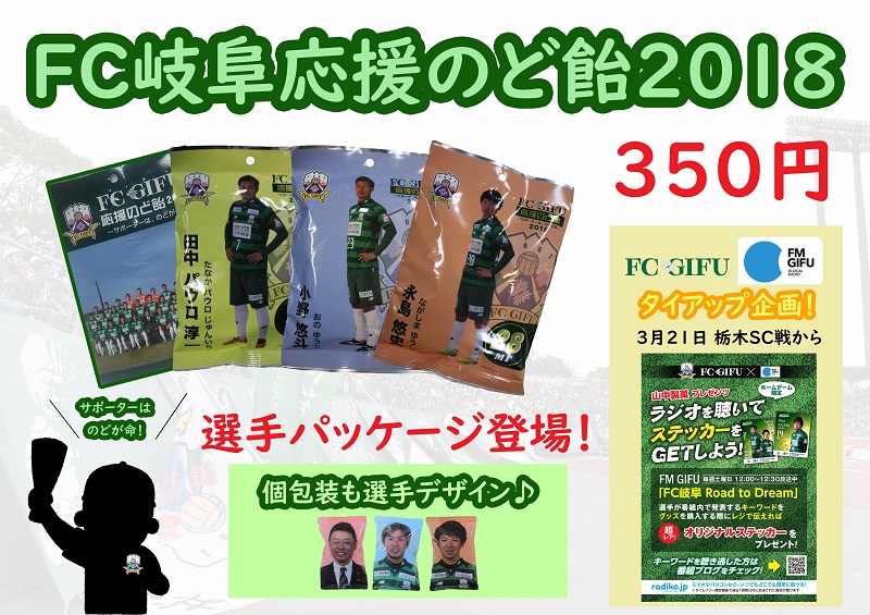 皆様お待ちかね!選手デザインパッケージの「FC岐阜応援のど飴」を西京極スタジアムで先行販売!