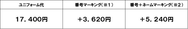 ※ユニフォーム本体と番号・ネームマーキングは別注文となりますのでご注意ください。