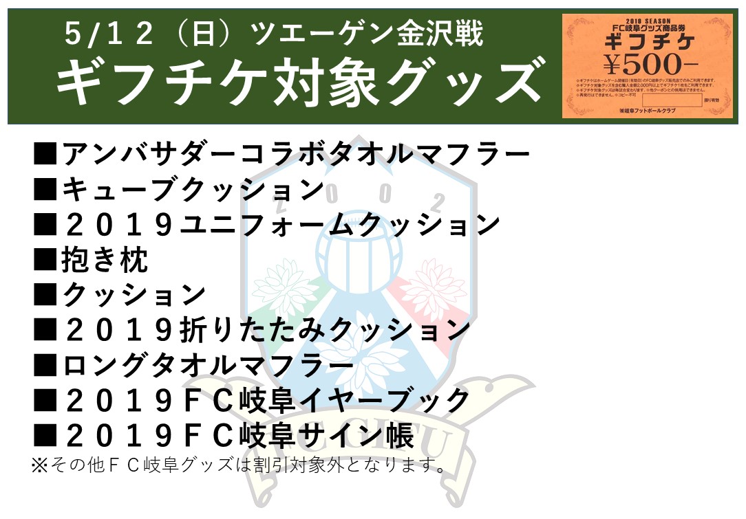 5月12日(日)ツエーゲン金沢戦 ~白山ダービー~ のギフチケ(FC岐阜商品券)対象グッズをお知らせいたします。