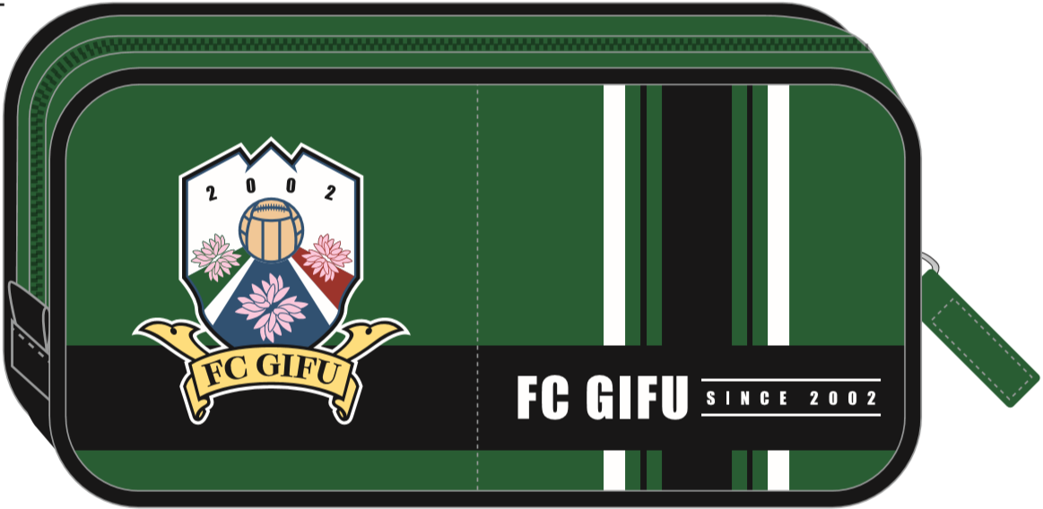 FC岐阜のチームカラーベースに、エンブレムを添えたカッコいいエナメルペンケースが登場!