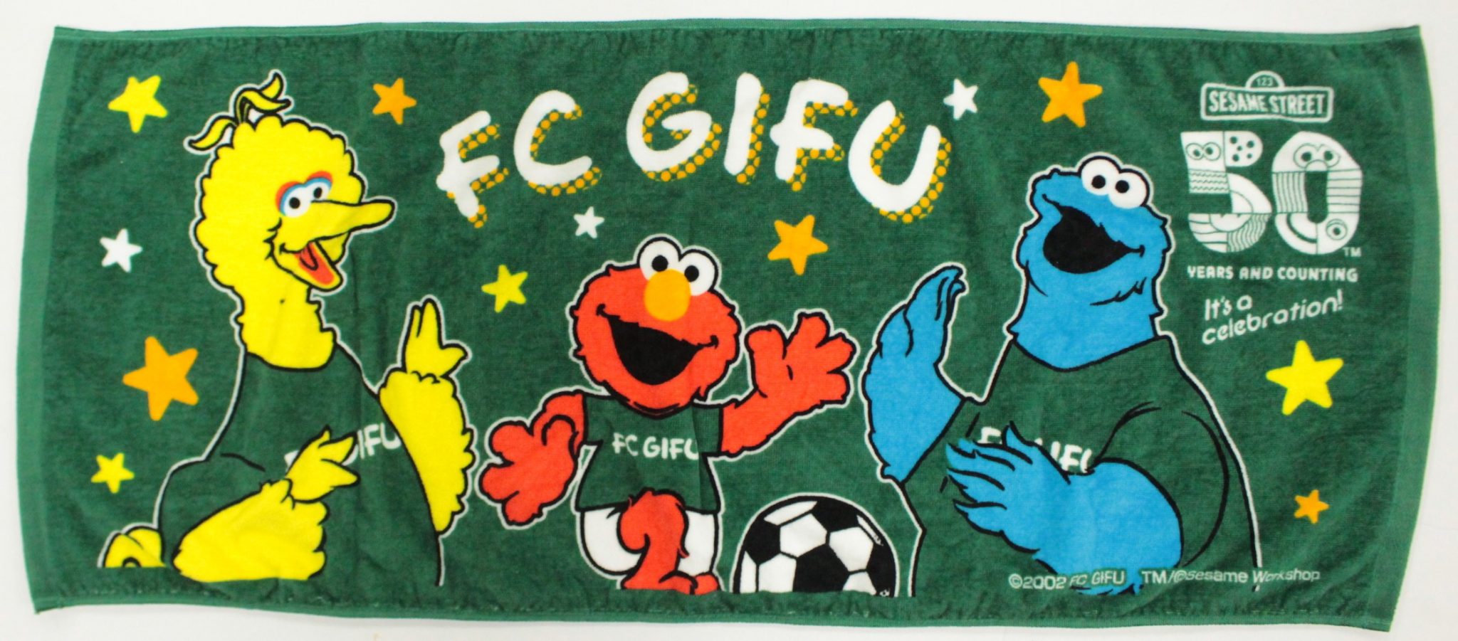 FC岐阜のTシャツを着たセサミストリートの人気キャラクター達が可愛い、コラボフェイスタオルが登場!