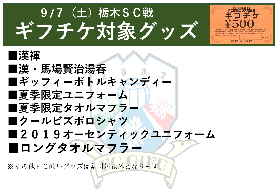 9月7日(土)栃木SC戦のギフチケ(FC岐阜商品券)対象グッズをお知らせいたします。