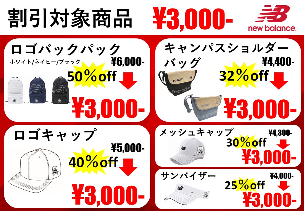 9月29日(日)横浜FC戦限定!「FC岐阜グッズ大売出し」として対象のニューバランスアイテムを特別セール価格にて販売いたします。
