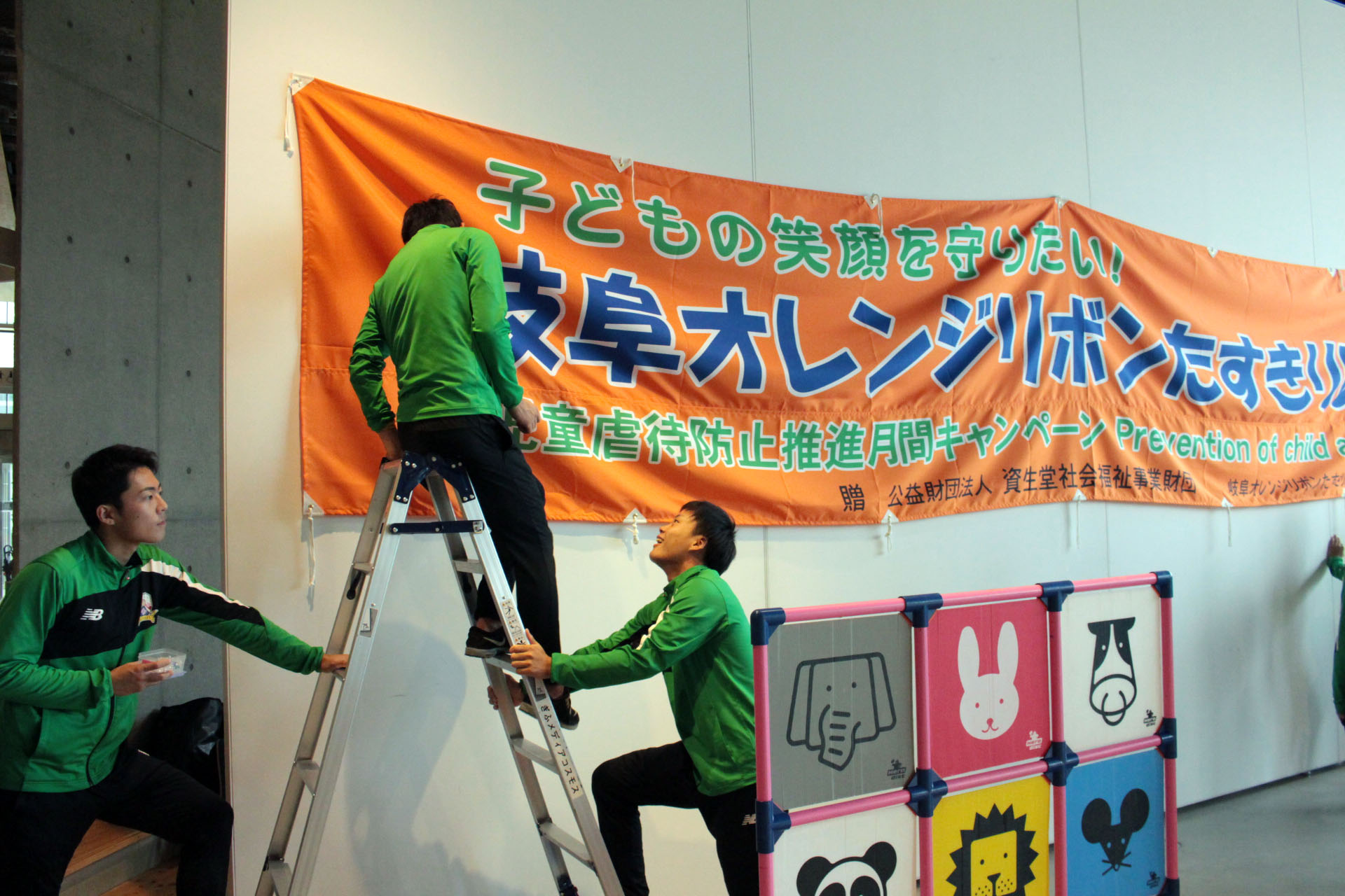 今年度は、FC岐阜と岐阜県との「オレンジリボン・キャンペーンコラボ事業」として、FC岐阜による児童養護施設への巡回サッカー教室開催や、FC岐阜ホームゲームでの児童虐待防止啓発キャンペーンを実施してきました。