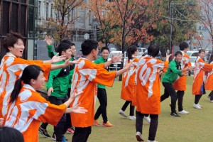 ぎふメディアコスモスに訪れた親子や一般の方に児童虐待防止について、PRを行いました。イベントの中ではよさこいソーランなどの発表もあり、ユースの選手も一緒に盛り上げました。