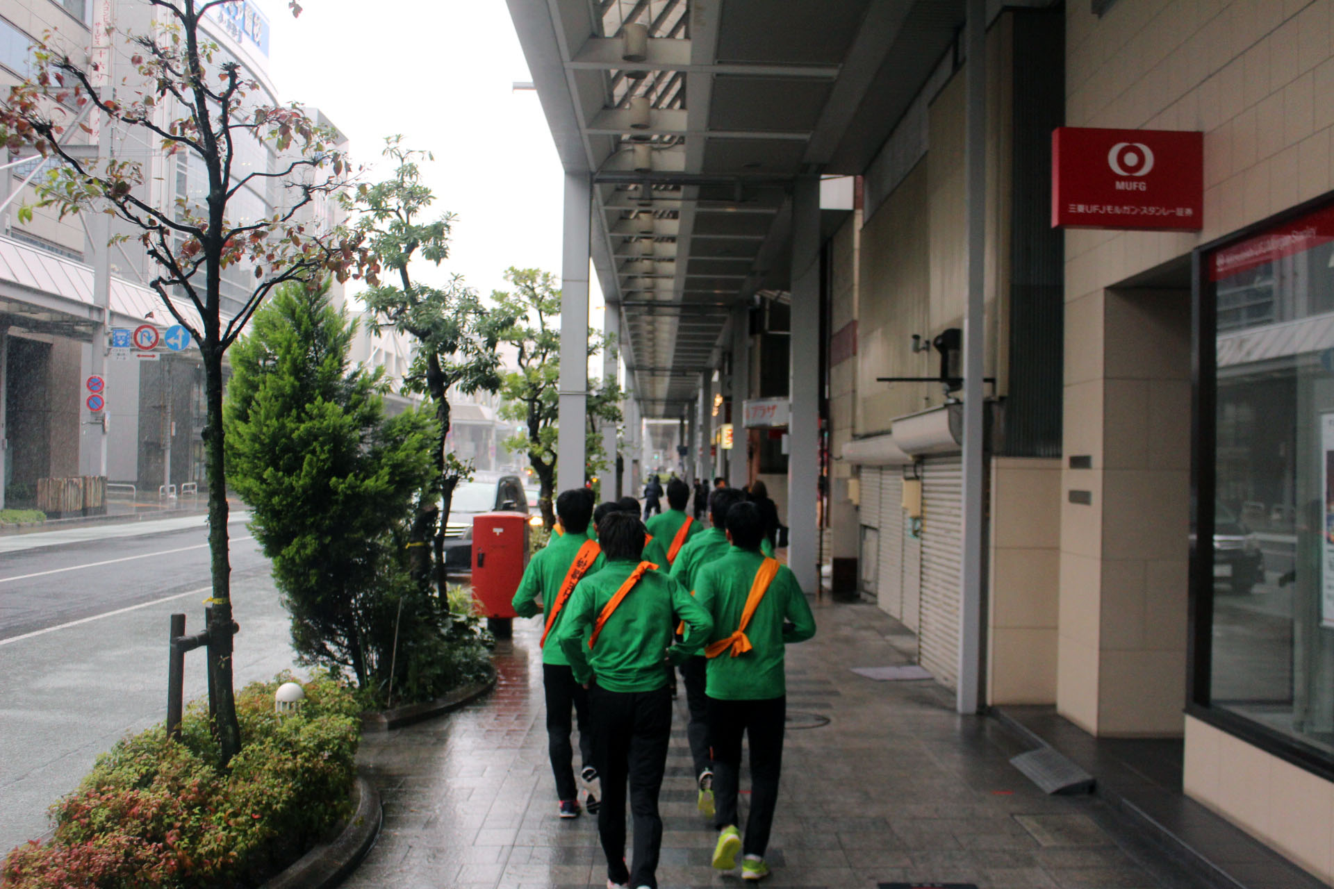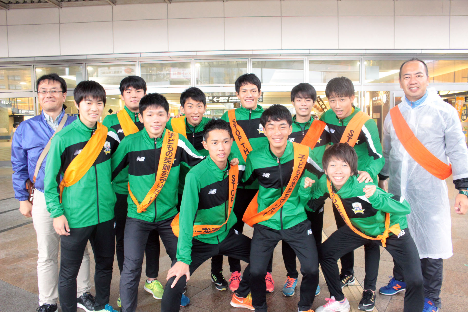 10月29日(日)台風が近づき、雨が降る中、県内の児童福祉関係者やボランティア等が主体となり「第10回ぎふオレンジリボンたすきリレー」が開催され、FC岐阜からアカデミーのユース選手27名が運営ボランティアとたすきリレー走者として、初参加しました。