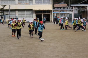 12月12日(火)加茂郡七宗町立上麻生小学校にて、1~6年生80名を対象にFC岐阜サッカー教室を実施させていただきました。FC岐阜からは中根コーチ、益山コーチが参加し、1~3年生37名、4~6年生43名の2つに分け行いました。
