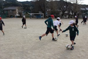 ドリブルのトレーニングもしました。2人組になり前の人の真似をしながらドリブルをしたり、ボールを上手くコントロール出来ました。