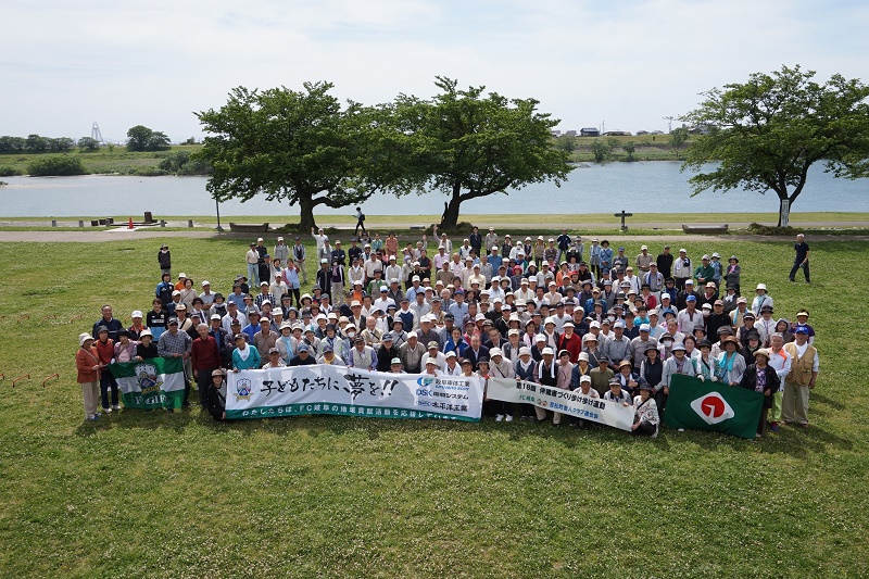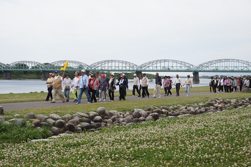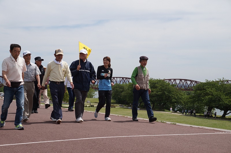5月16日(火)笠松町老人クラブ連合会による「伴健康づくり歩け歩け運動」が、笠松町の木曽川河川敷にある「笠松みなと公園」で行われました。