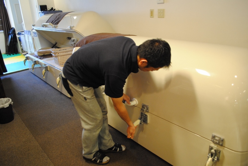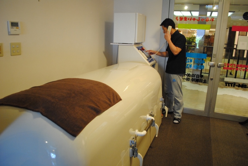 まずは酸素カプセルについて説明を聞きます。とても丁寧に教えてくださいました。この酸素カプセルは、気圧と酸素のバランスが良く、一番良い状態で酸素を取り入れることができるそうです。