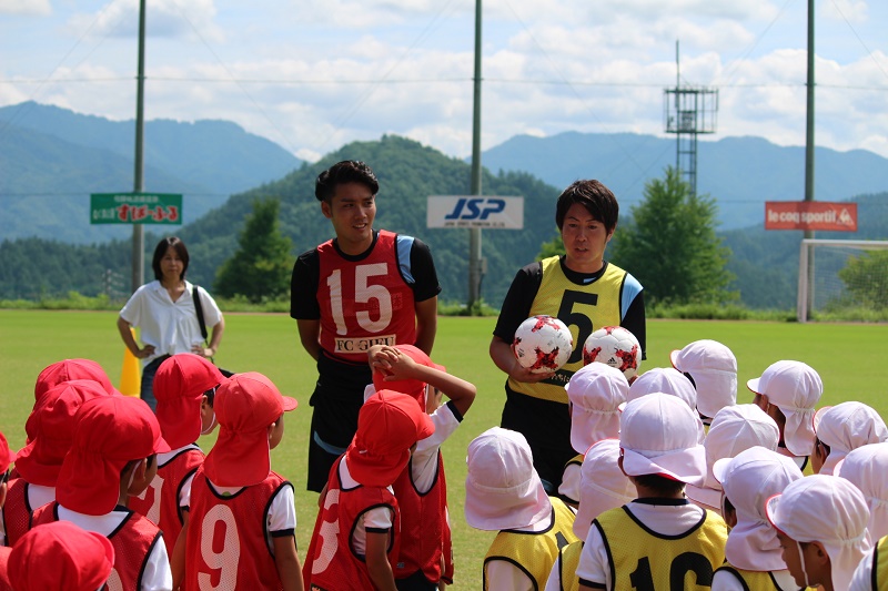 8月4日(金)飛騨市の飛騨古川ふれあい広場にて、FC岐阜飛騨市サッカー教室を実施しました。