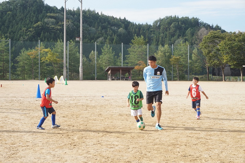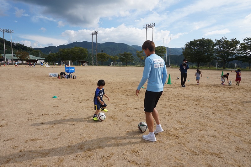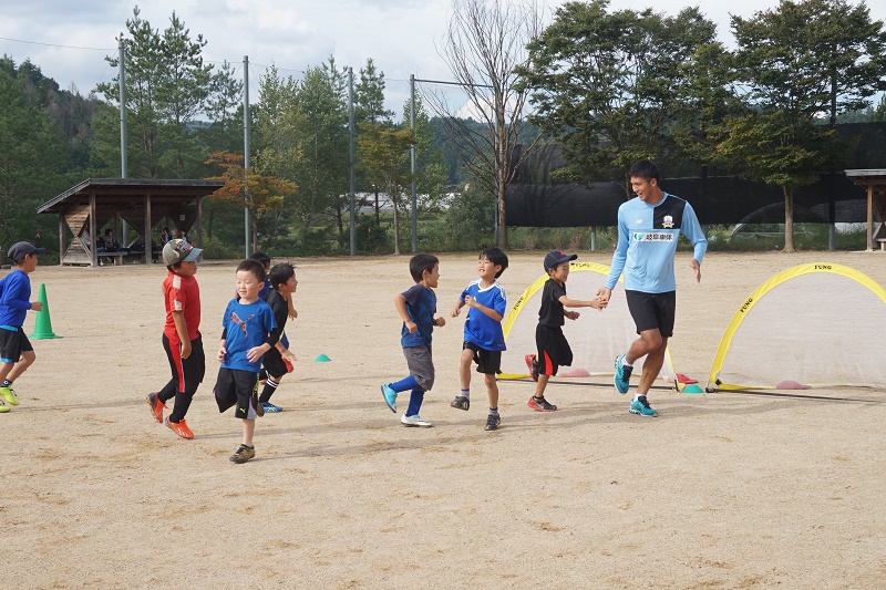 9月23日(土)高山市にある、大八グランドにて高山市主催による「高山市交流サッカー教室」が開催され、高山市内に住む小学校1年生~6年生の子どもたち72人が参加しました。