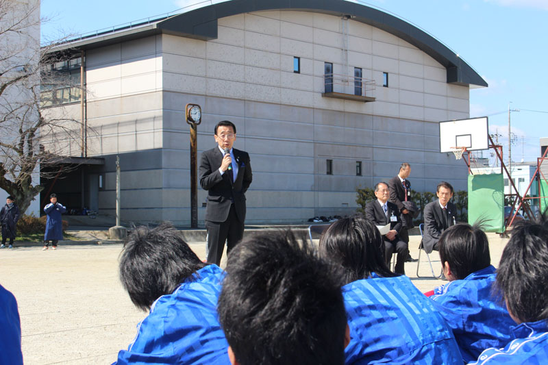 まず最初に羽島市の松井市長からご挨拶をいただきました。松井市長からは、「気持ち、技、体をしっかりと磨いて、頑張ってほしい」とご挨拶頂きました。