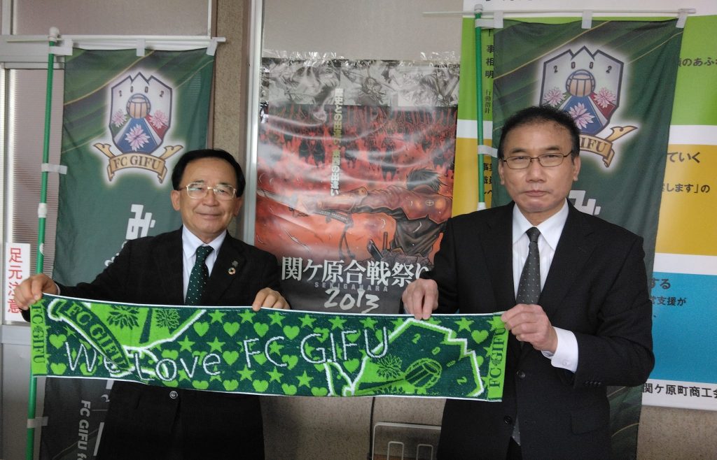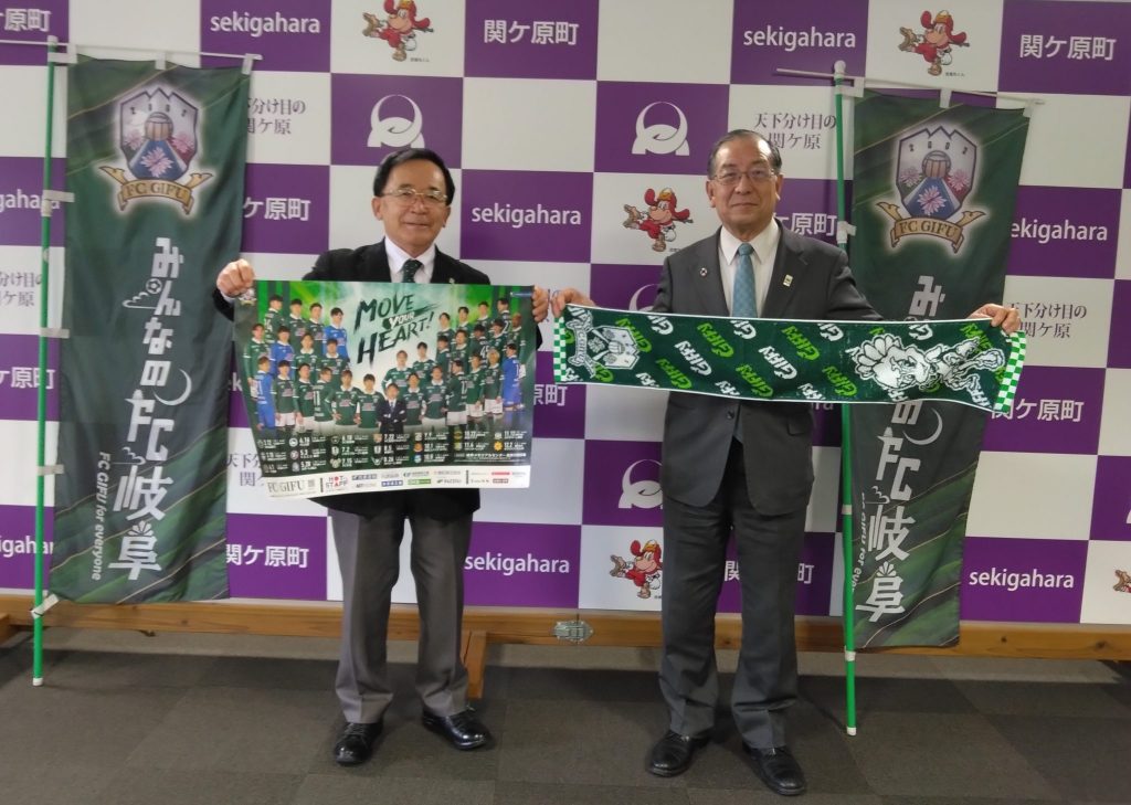 3月12日(日)ホーム開幕戦となる松本山雅FC戦の「関ケ原町ホームタウンデー」開催にあたり、3月1日(水)関ケ原町役場にて、宮田 博之 会長が、西脇 康世 関ケ原町長を訪問させていただきました。