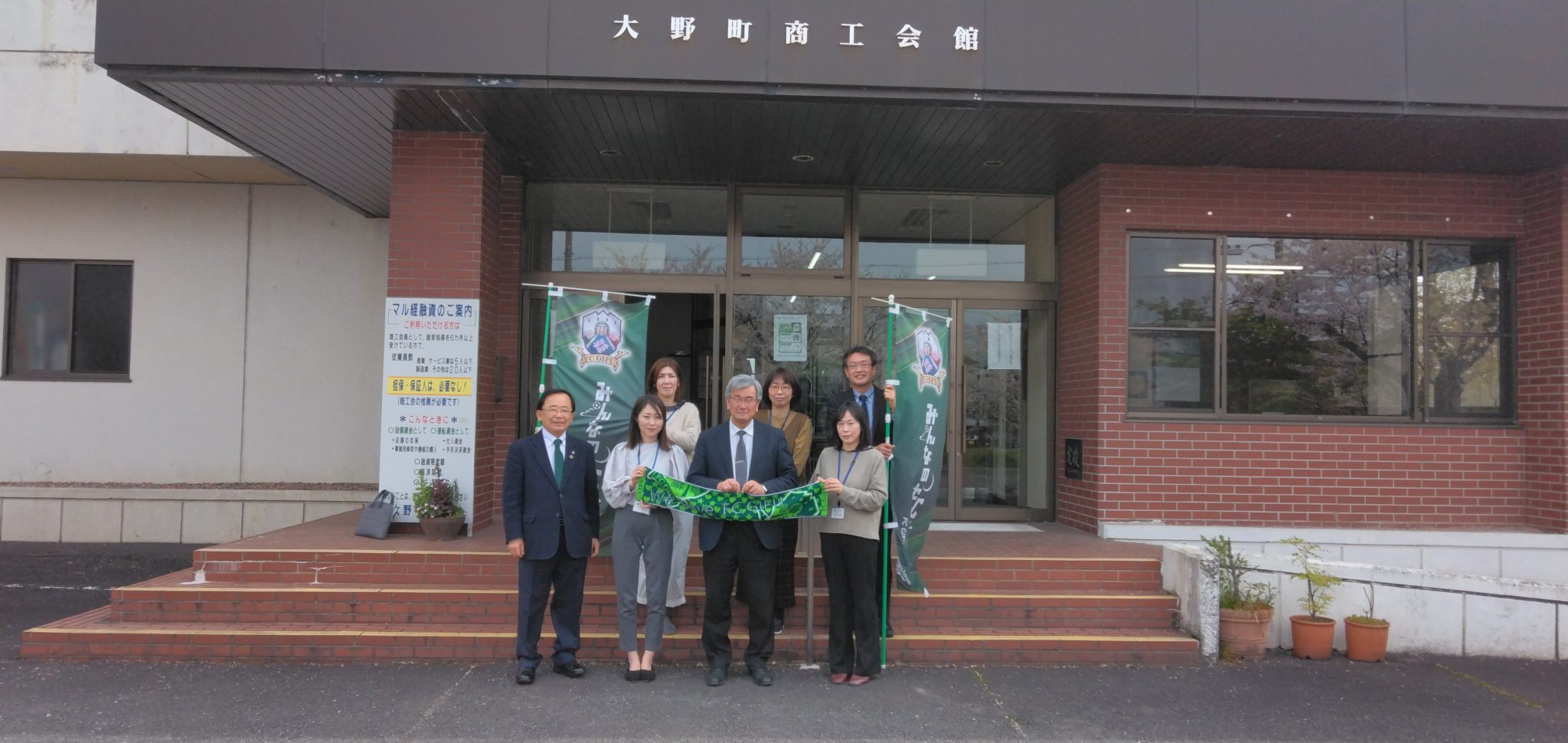 また、大野町商工会に訪問し、國枝 幸一 事務局長にご挨拶させていただくとともに、所属会員の皆様200名様をご招待させていただく「感動を共にチケット」の利用促進をご依頼させていただきました。