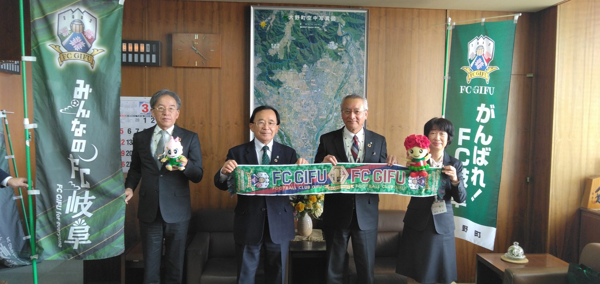 5月3日(水・祝)のJ3リーグ第9節、ホームでのY.S.C.C.横浜戦の「大野町ホームタウンデー」開催にあたり、3月31日(金)大野町役場にて、宮田 博之 会長が、宇佐美 晃三 大野町長を表敬訪問させて頂きました。