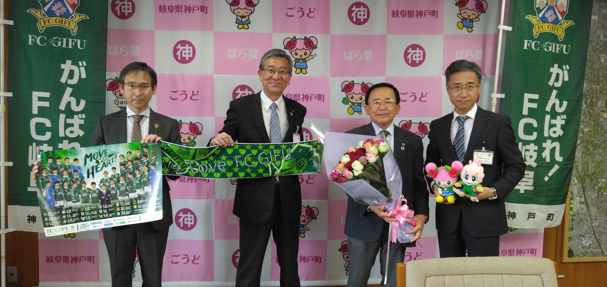 そして、美濃加茂市在住の500名様が無料で試合観戦できる「感動を共にチケット」をご案内し、ぜひ多くの方にスタジアムにご来場いただき、チーム・選手を応援していただけますよう、藤井市長にお願い申し上げました。