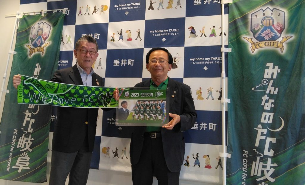 7月2日(日)のJ3リーグ第16節、ホームスタジアムでの いわてグルージャ盛岡戦の「垂井町ホームタウンデー」開催にあたり、6月21日(水)垂井町役場にて、宮田 博之 会長が、早野 博文 垂井町長を表敬訪問いたしました。