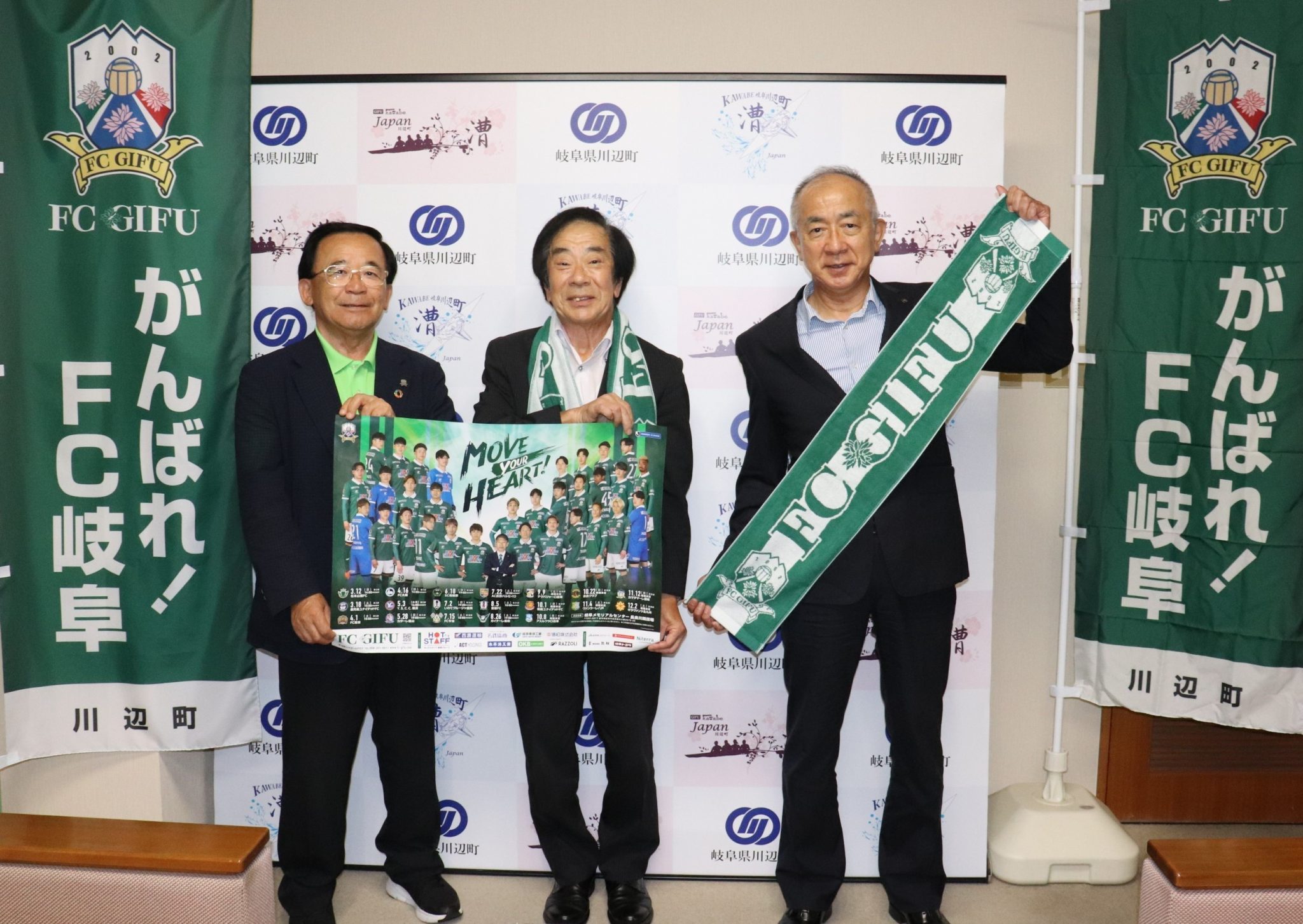 8月5日(土)のJ3リーグ第21節、ホームスタジアムでの愛媛FC戦の「川辺町ホームタウンデー」開催にあたり、7月13日(木)川辺町役場にて、宮田 博之 会長が、佐藤 光宏 川辺町長と佐伯 敏充 川辺町商工会長を表敬訪問いたしました。