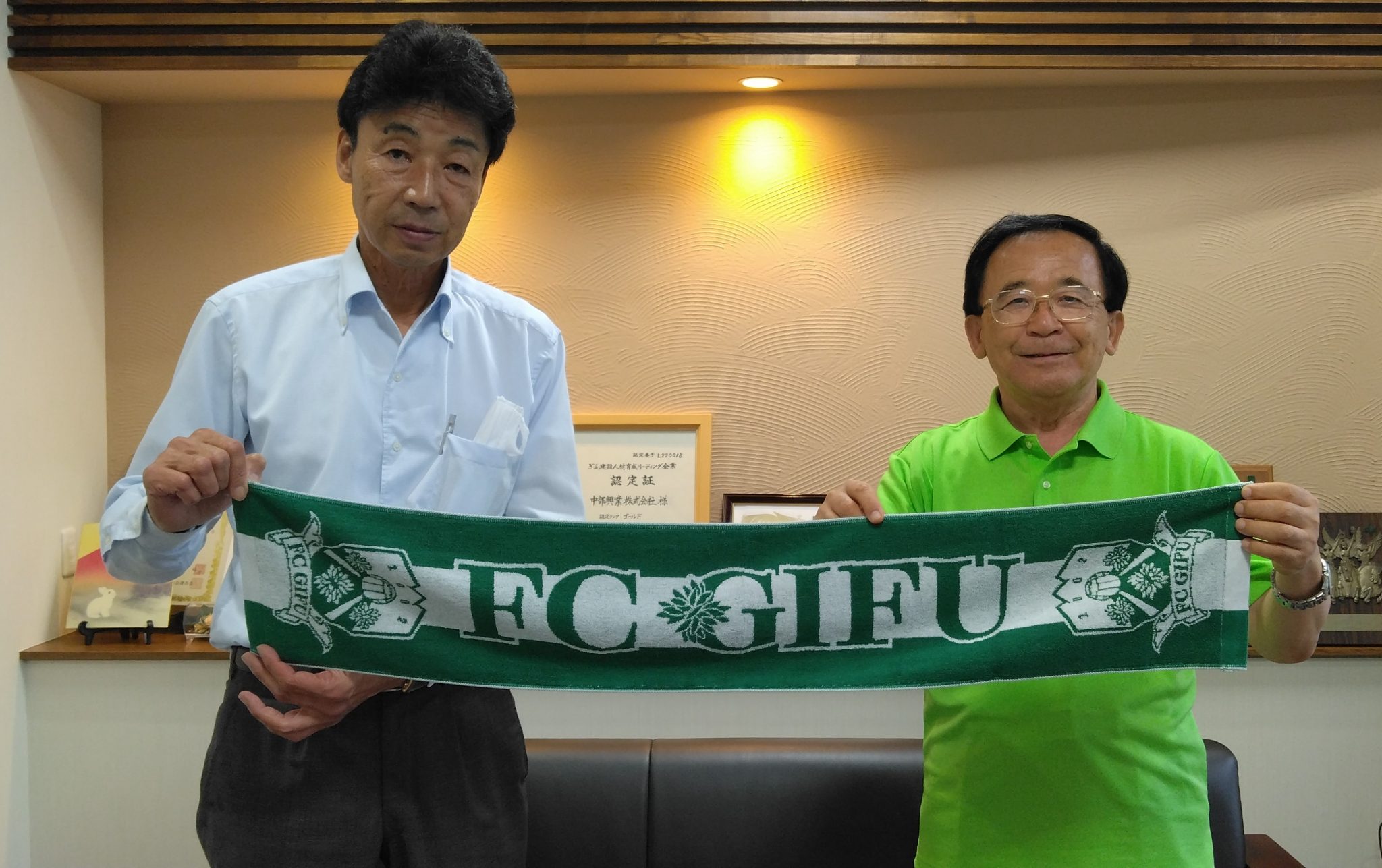 また、長谷川 会長が代表取締役を務められている中部興業株式会社様には、FC岐阜の手すりバナーパートナー(パートナー)として日頃よりご支援・ご声援いただいていますので、宮田 会長から感謝申し上げました。