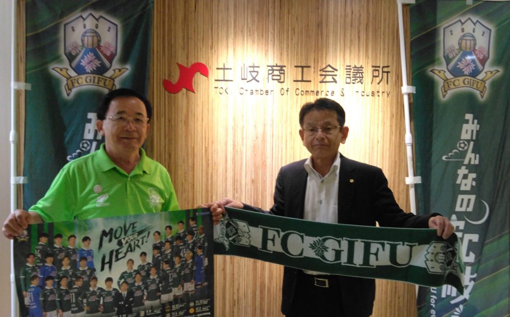 8月26日(土)J3リーグ第24節、ガイナーレ鳥取戦の「土岐市ホームタウンデー」開催にあたり、8月24日(木)土岐市役所にて、宮田 博之 会長が、太田 弘 土岐市教育委員会事務局長を表敬訪問いたしました。