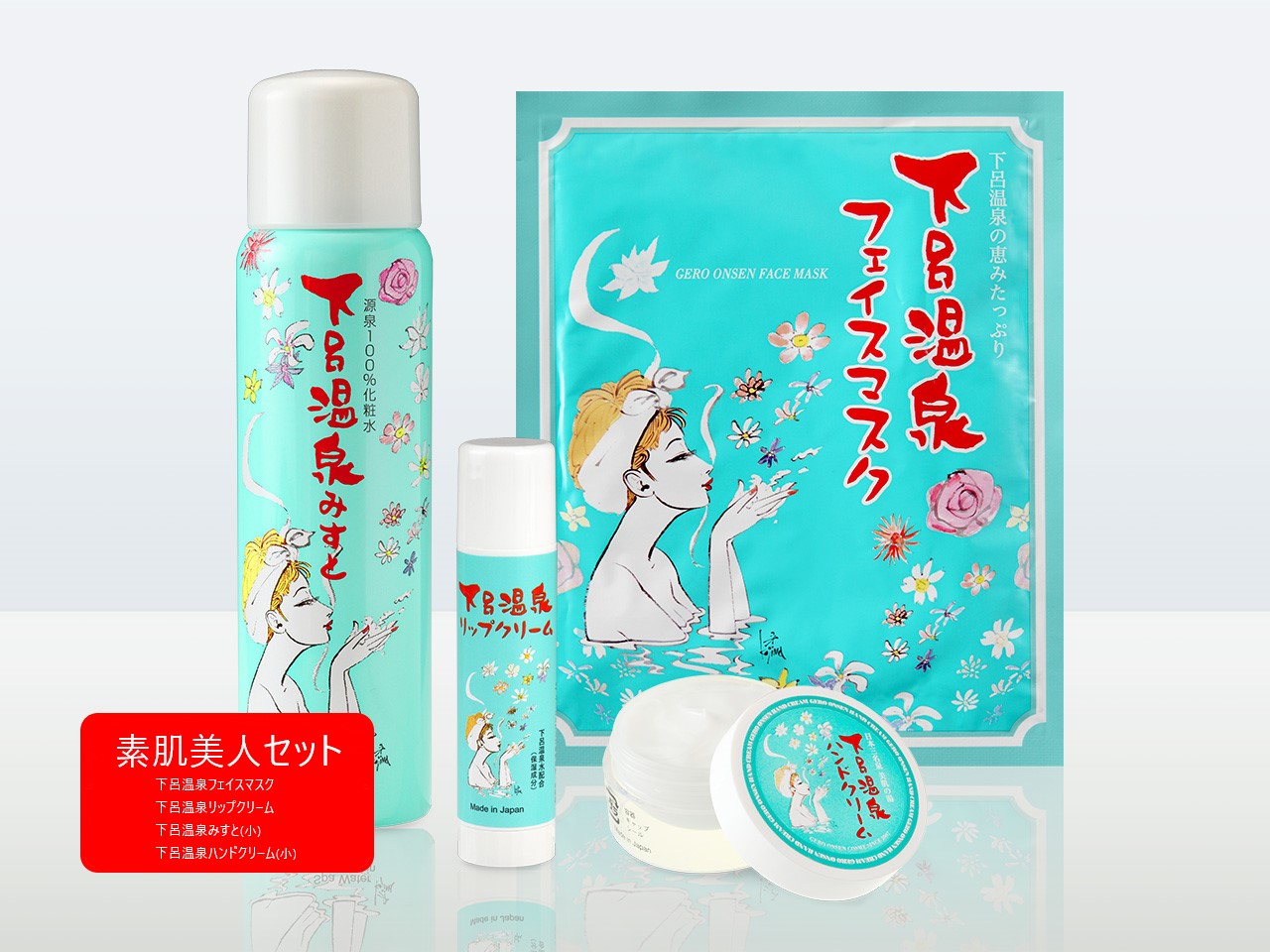 下呂市ホームタウンデーでは、来場者プレゼントとして素肌美人セット(下呂温泉フェイスマスク・下呂温泉リップクリーム・下呂温泉みすと・下呂温泉ハンドクリーム)などをご提供いただきます。日本三明泉の下呂温泉のお湯は、泉温84度という高い温度で湧いている天然温泉です。泉質はアルカリ性単純泉、無色透明、ほのかな香りととてもまろやかなお湯が特徴で、お肌に優しくからんで、絹のようにスベスベにしてくれます。