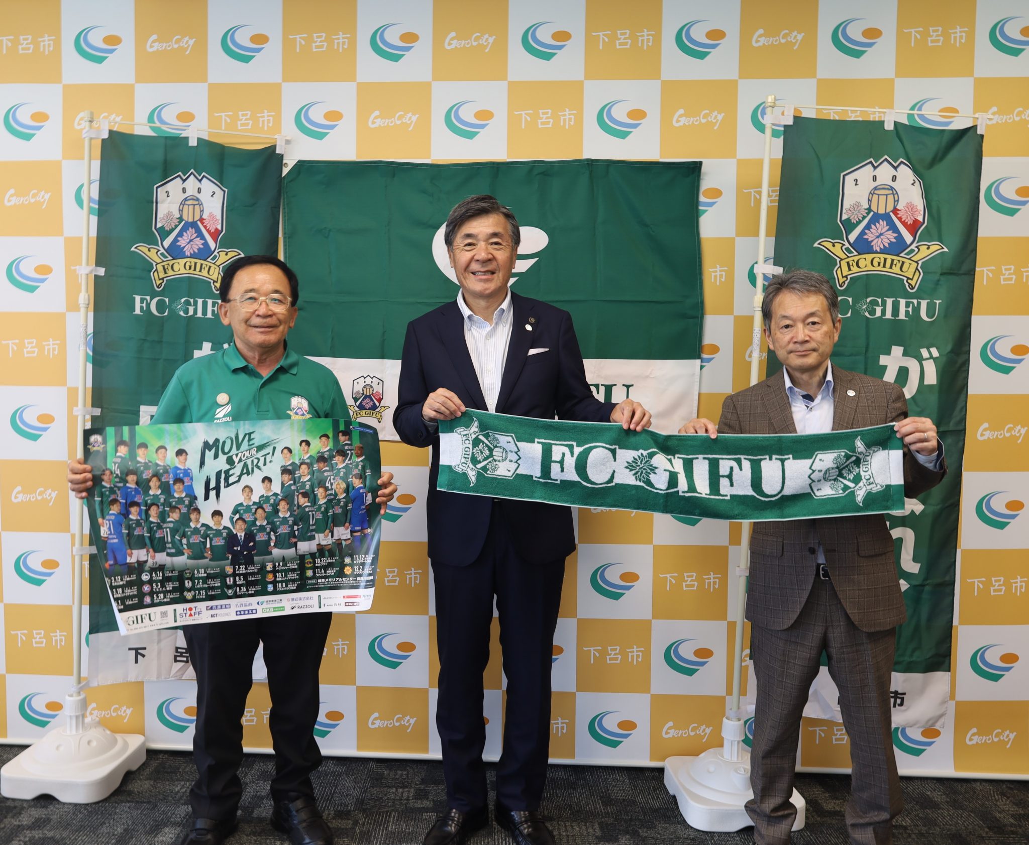 そして、下呂市在住の500名様が無料で試合観戦できる「感動を共にチケット」をご案内し、ぜひ多くの方にスタジアムにご来場いただき応援していただけますよう、山内 市長にお願い申し上げました。