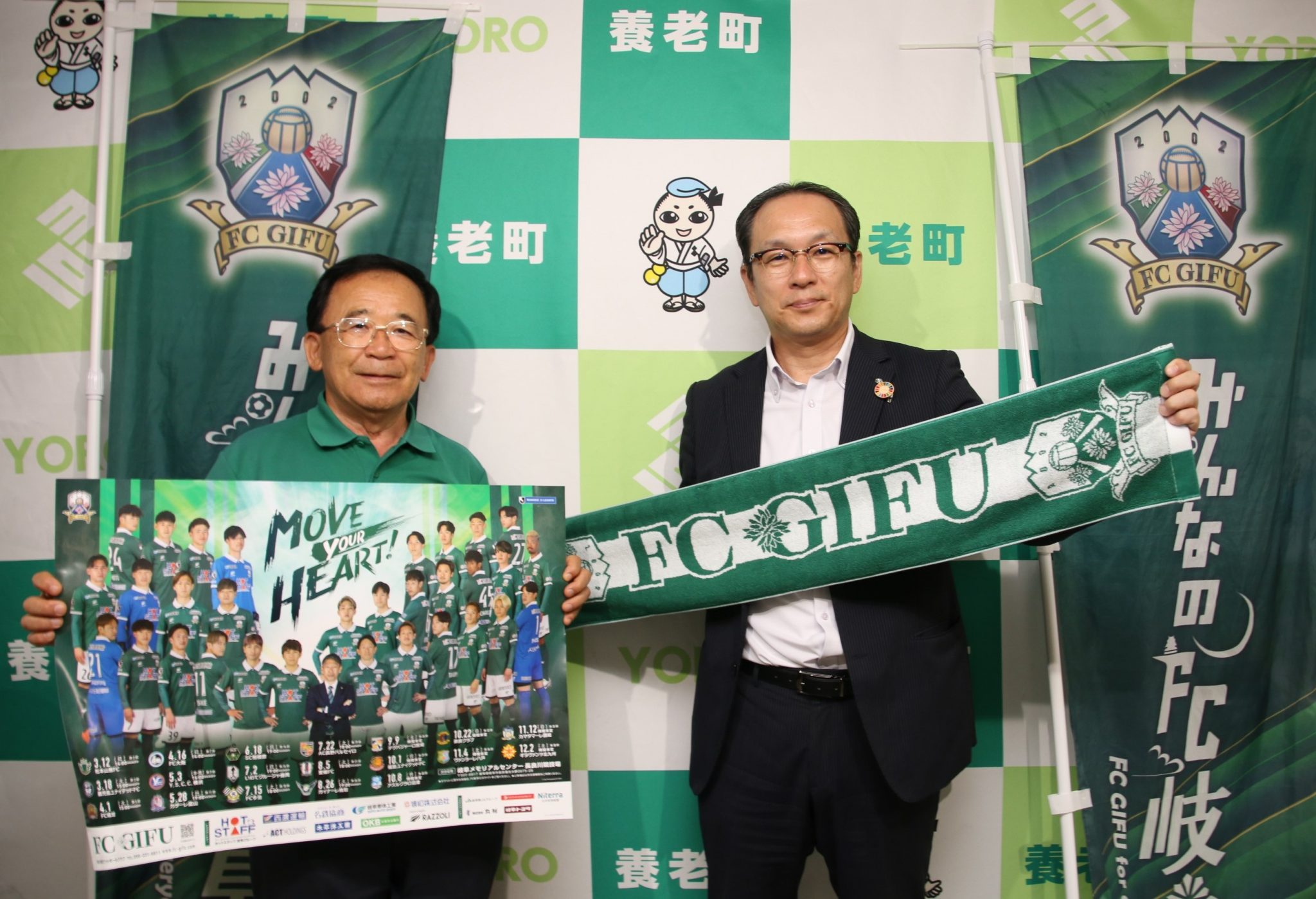 8月26日(土)J3リーグ第24節、ガイナーレ鳥取戦の「養老町ホームタウンデー」開催にあたり、8月21日(月)養老町役場にて、宮田 博之 会長が、川地 憲元 養老町長を表敬訪問いたしました。