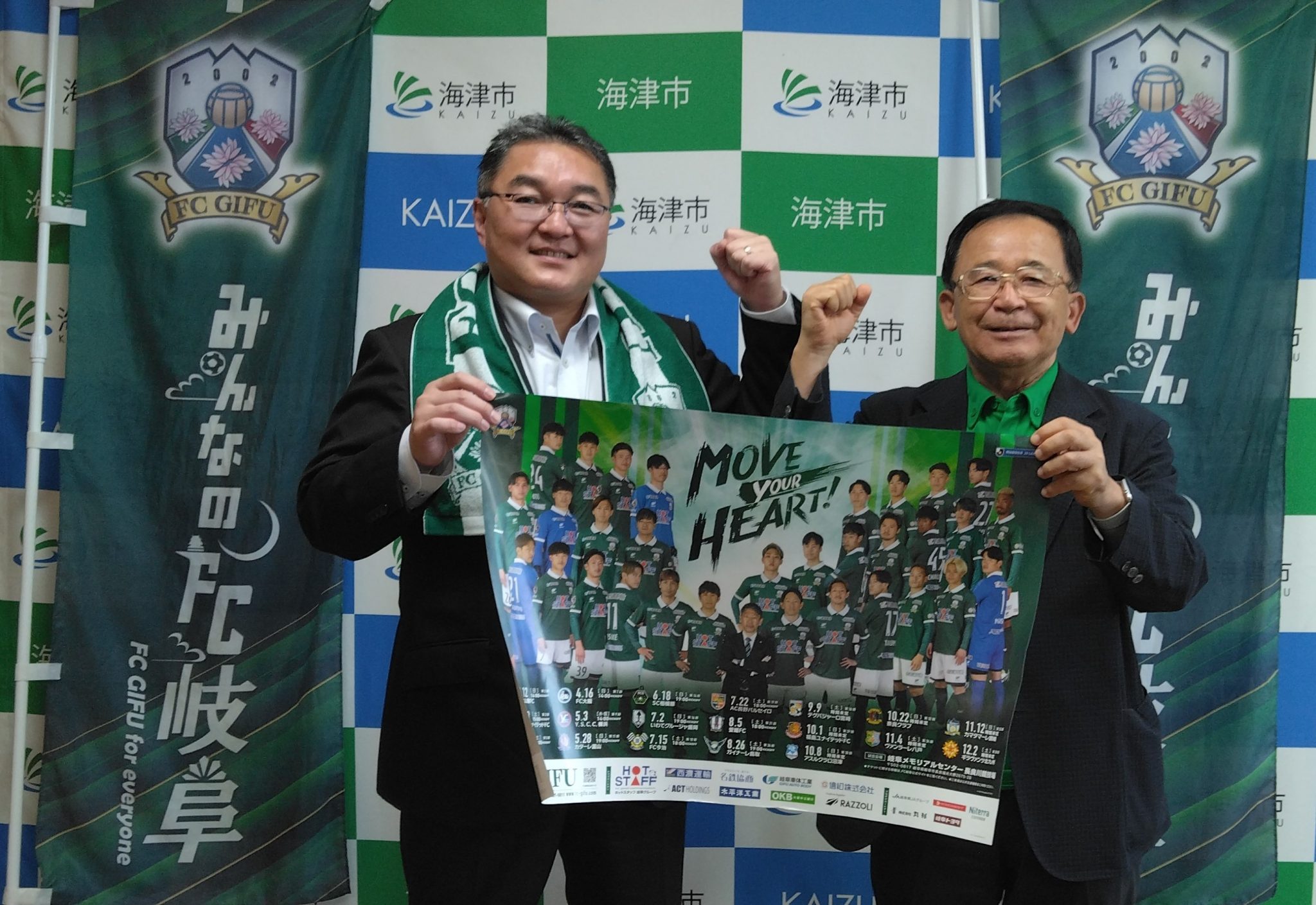 そして、海津市在住の500名様が無料で試合観戦できる「感動を共にチケット」をご案内し、ぜひ多くの方にスタジアムにご来場いただき応援していただけますよう、横川 市長にお願い申し上げました。