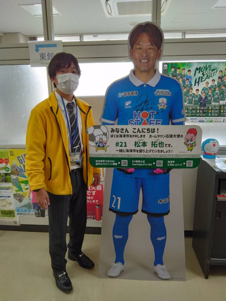 (海津市ホームタウン応援大使 松本 拓也 選手 等身大パネル)