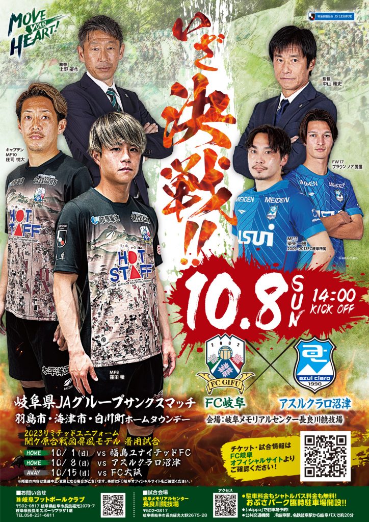10月8日(日)岐阜県JAグループサンクスマッチ アスルクラロ沼津戦「海津市ホームタウンデー」では、海津市在住の方500名様、海津市商工会の所属会員200名様を無料でご招待いたします。ぜひ多くの方にスタジアムにご来場いただきまして、FC岐阜を応援していただければ幸いです。