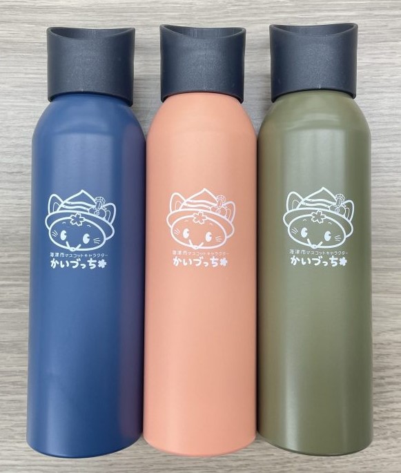海津市ホームタウンデーでは、来場者プレゼントとして、海津市のマスコットキャラクター「かいづっち」のイラストをあしらった「かいづっちアルミボトル」をご提供していただきます。