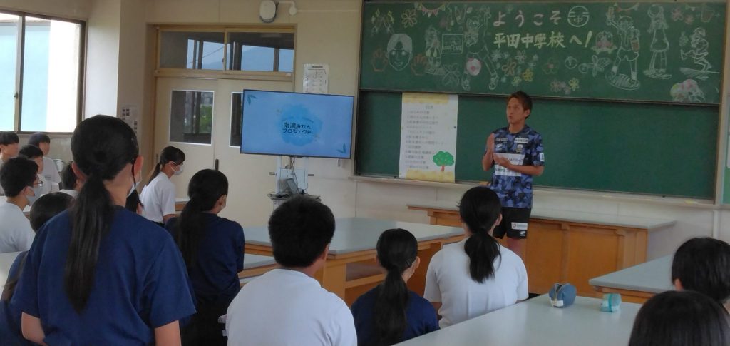 また、海津市ホームタウン応援大使には、松本 拓也 選手が就任しています。海津市ホームタウンデーを盛り上げるため、松本 選手と海津っ子南濃みかんプロジェクトと題して海津市の特産品「南濃みかん」を広める活動を行う平田中学校との交流会を7月6日(木)に開催しました。今後もSNSでの配信や各種イベントなどを通じて、松本 選手と海津市が相互に連携し、観光やグルメなどの魅力をPRしていきます。