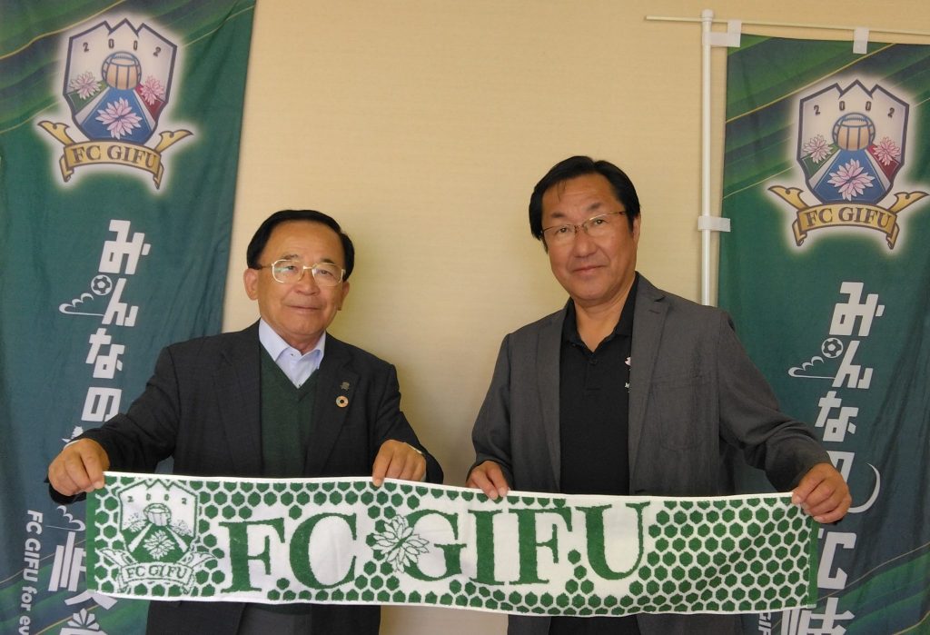 11月4日(土)J3リーグ第34節、ヴァンラーレ八戸戦「本巣市ホームタウンデー」開催にあたり、10月30日(月)本巣市役所(真正庁舎)にて宮田 博之 会長が、川治 秀輝 本巣市教育員会 教育長を表敬訪問いたしました。