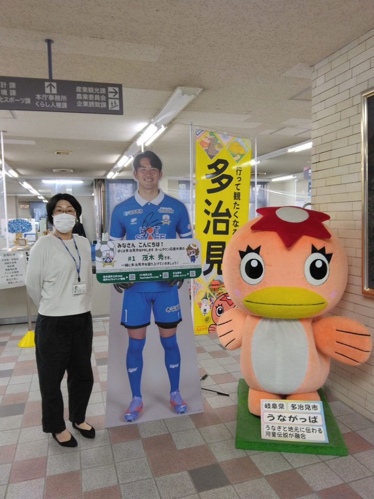 さらに、県内42市町村ではそれぞれの応援大使の等身大パネルが皆様をお出迎えしています。パネルには各市町村のホームページと応援大使を務める選手個人のSNS、FC岐阜公式YouTubeにアクセスできるQRコードがついていますので、是非ご覧ください。