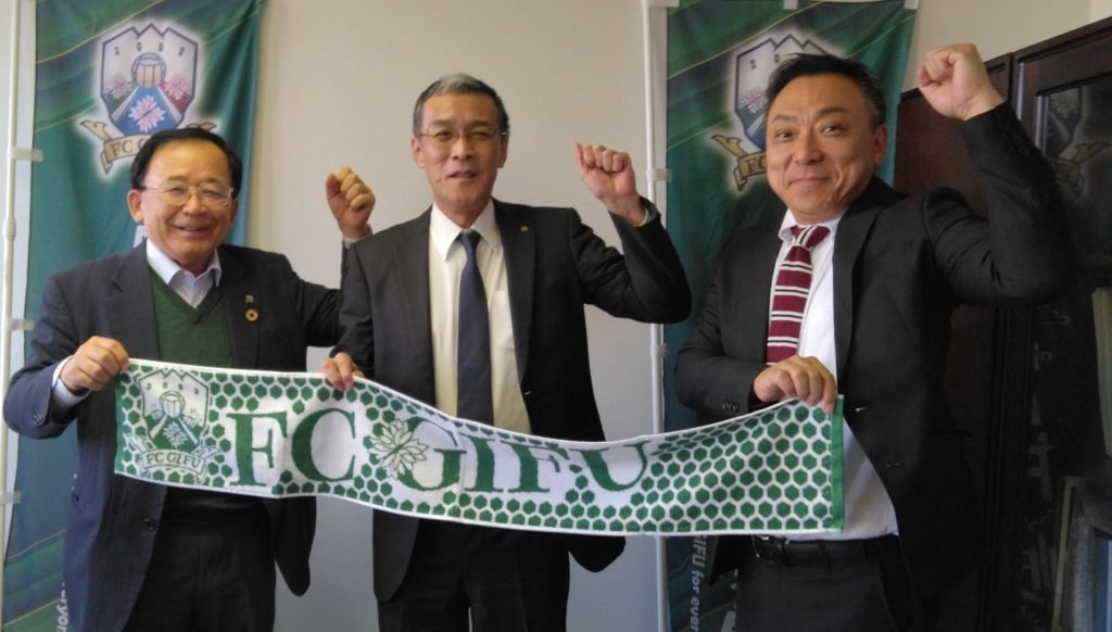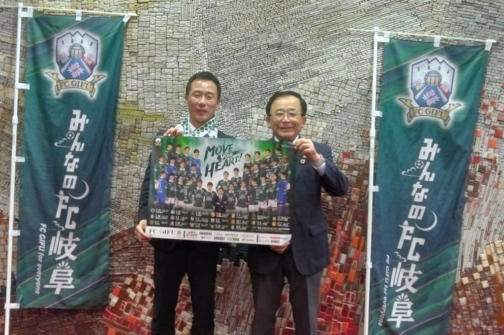 (写真左、髙木市長は、2005年にFC岐阜に加入し、2シーズンご活躍されました)